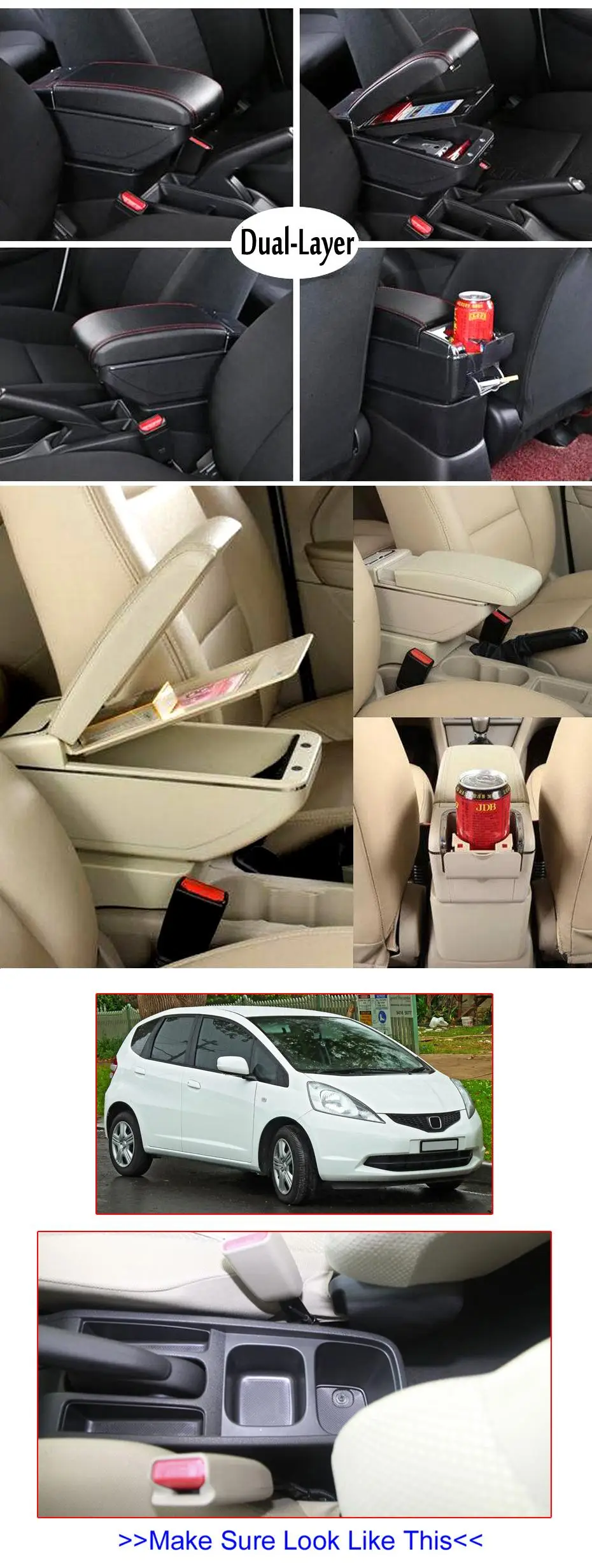 Для Honda Jazz Fit 2009-2013 2010 2011 2012 автомобильный ящик для хранения центральная консоль кожаный двухслойный подлокотник подстаканник