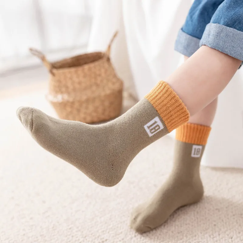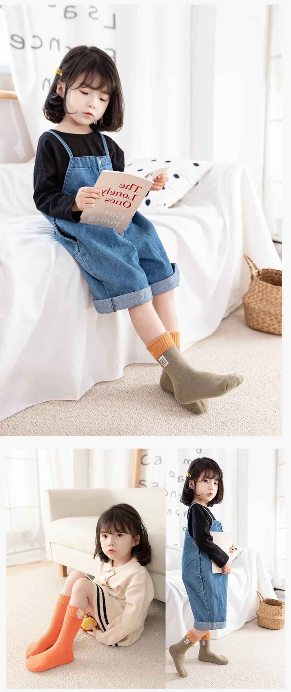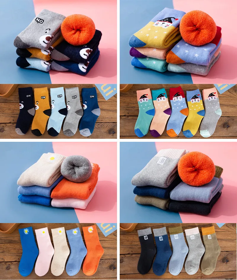 5 парлот, Детские хлопковые носки для девочек и мальчиков, зимняя утепленная одежда однотонные Модные Спортивные Повседневные носки для малышей