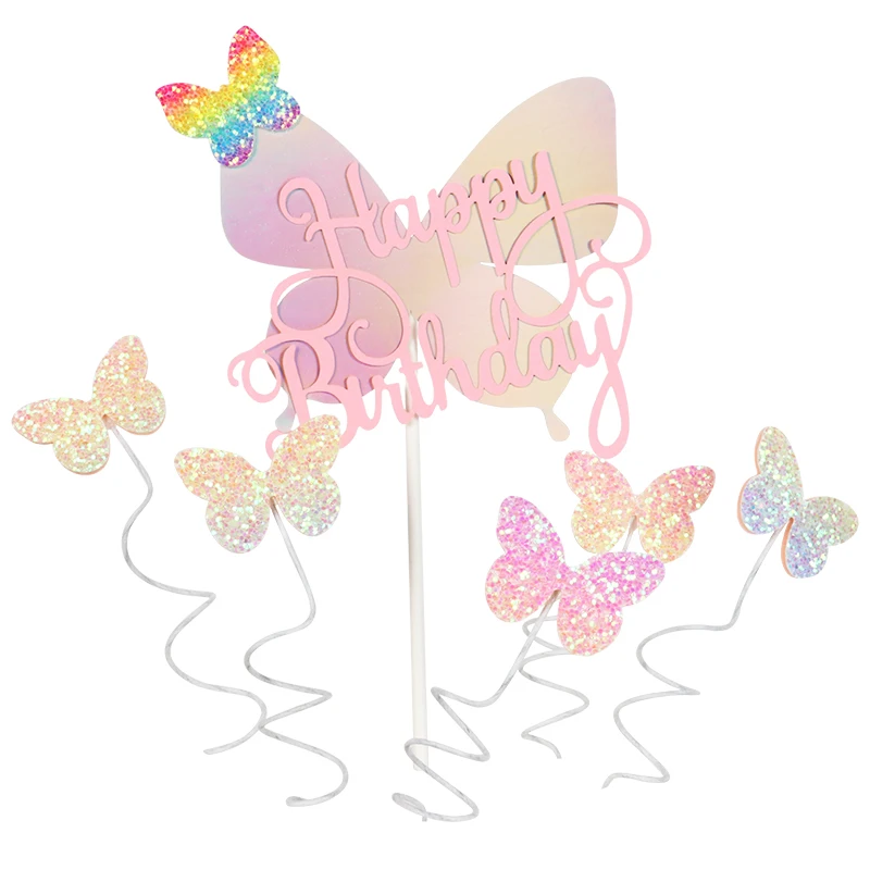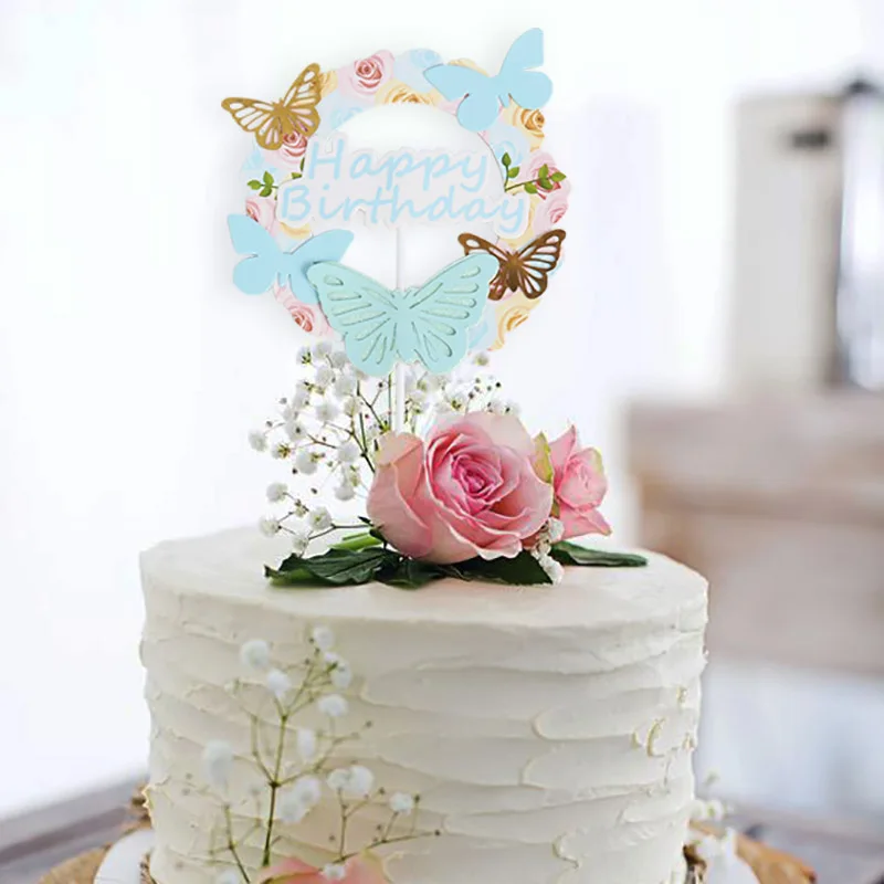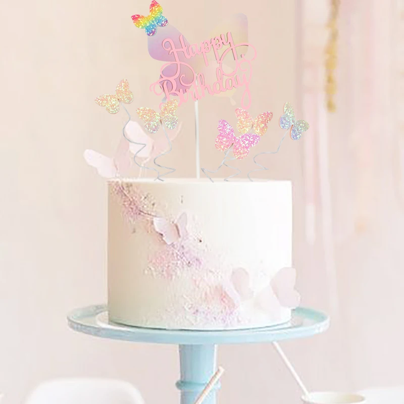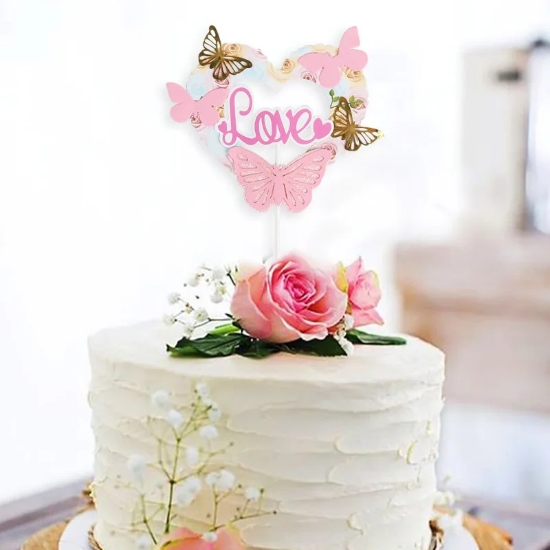 Розовый бумажный Топпер для торта с бабочками, Топпер для дня рождения, для торта, Любовный декор, для детского дня рождения, свадьбы, вечеринки
