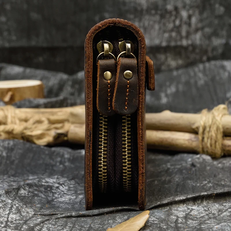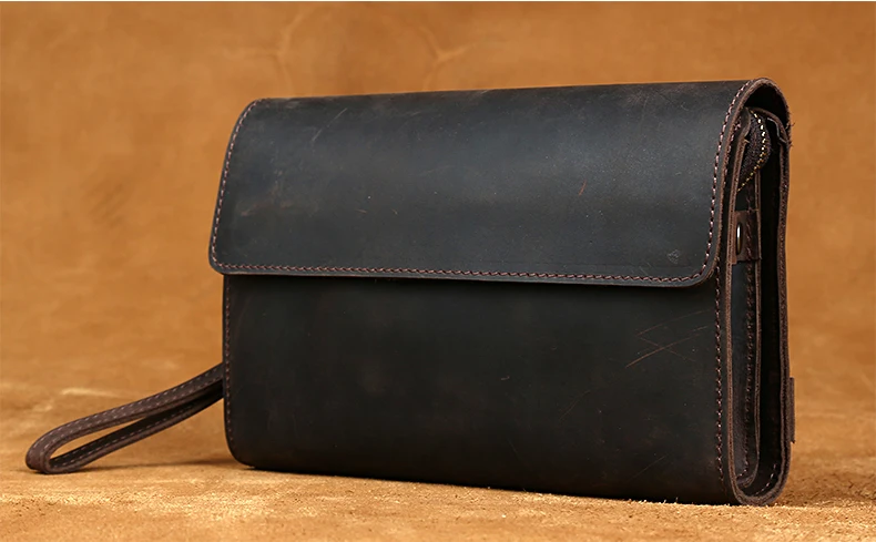 Мужской клатч из натуральной кожи, с двумя отделениями, в винтажном стиле