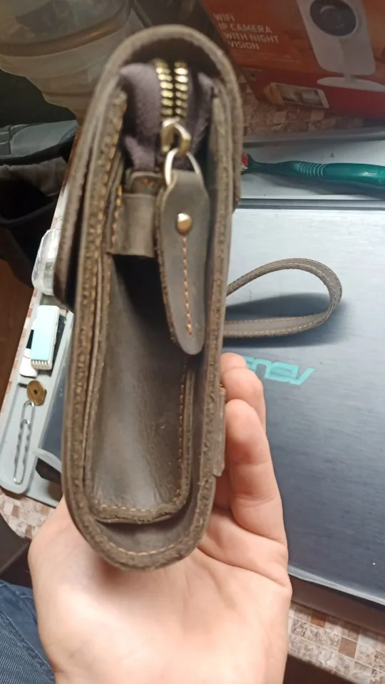 качественный клатч. толстая двухслойная кожа. очень приятный на ощупь. ну и вместительный два паспорта кошелек два телефона и авто документы