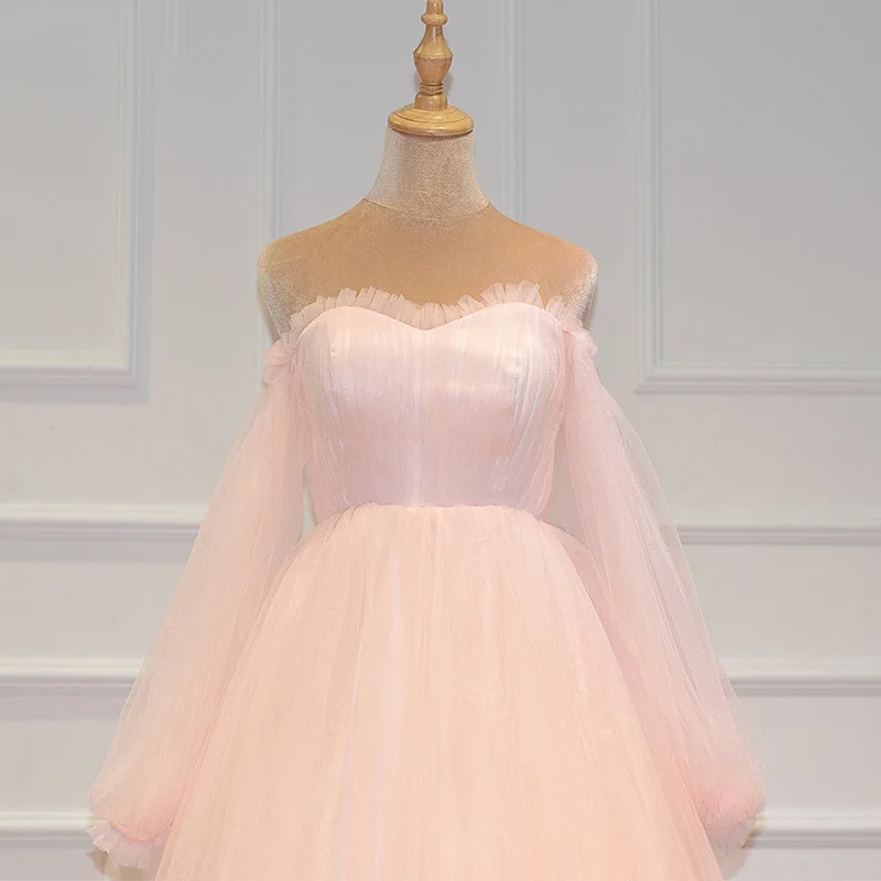 Элегантное розовое вечернее платье с длинными рукавами 2021, дешевы...