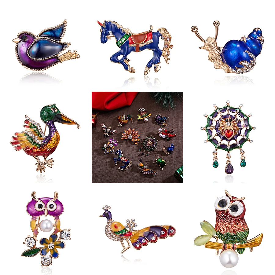 Эмалированная брошь в виде летающих птиц, булавки, лошадь, улитка, корморант, паутина, паук, Сова, павлин, птицы, насекомые, брошь в виде животного, рождественские подарки
