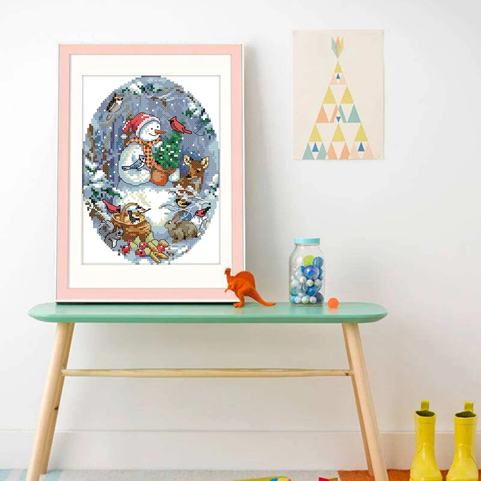 Набор для вышивки с милым снеговиком Joy Sunday, Набор для вышивки крестиком с животными для гостиной, Набор для вышивки китайской вышивки