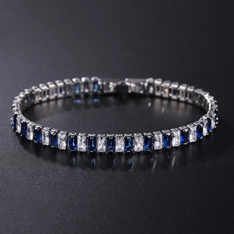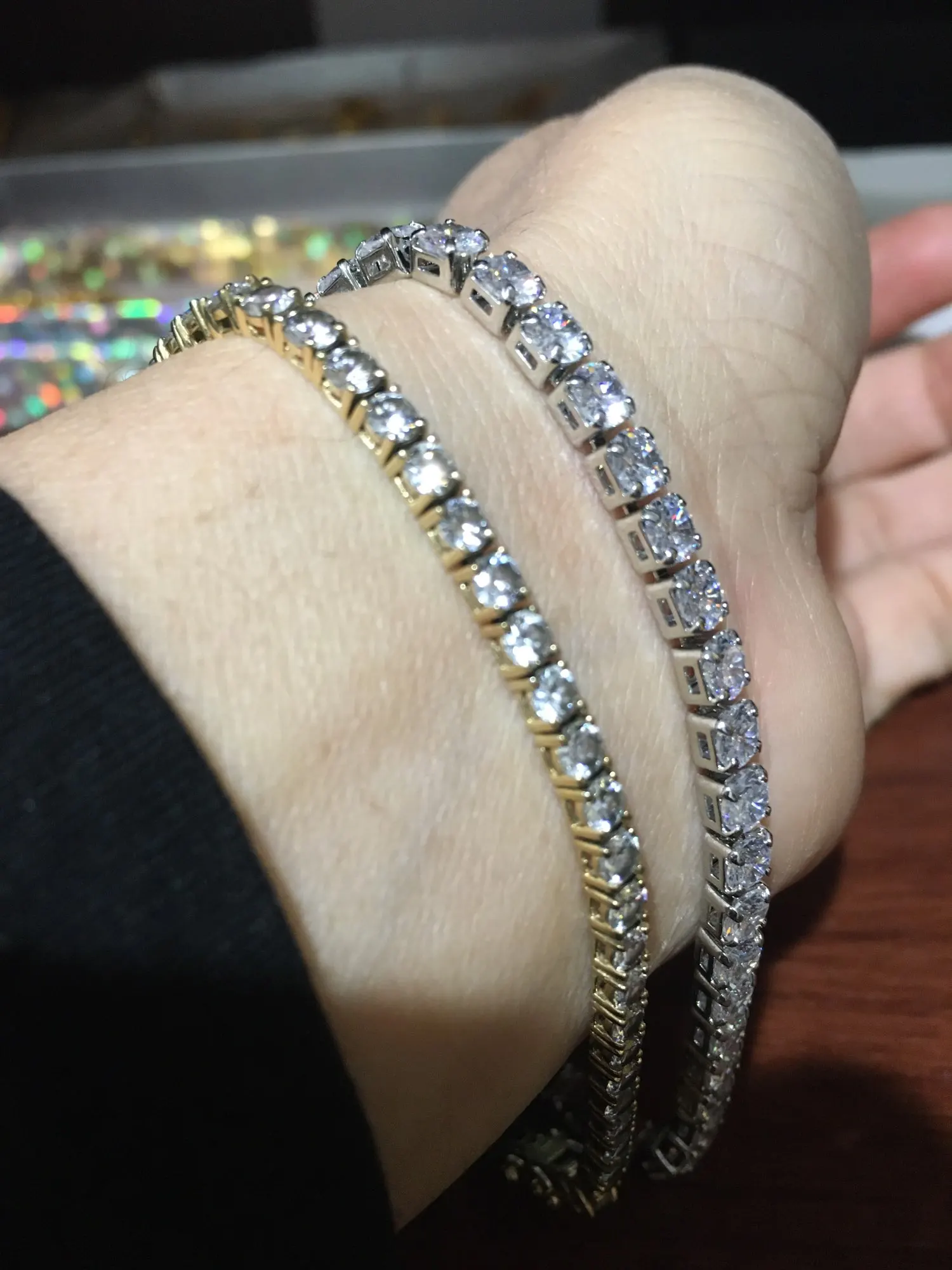 Браслет-цепочка для мужчин и женщин, Ювелирное Украшение с зеленым кубическим цирконием, 4 мм, цвет золотосеребро, цепь с кубическим цирконием
