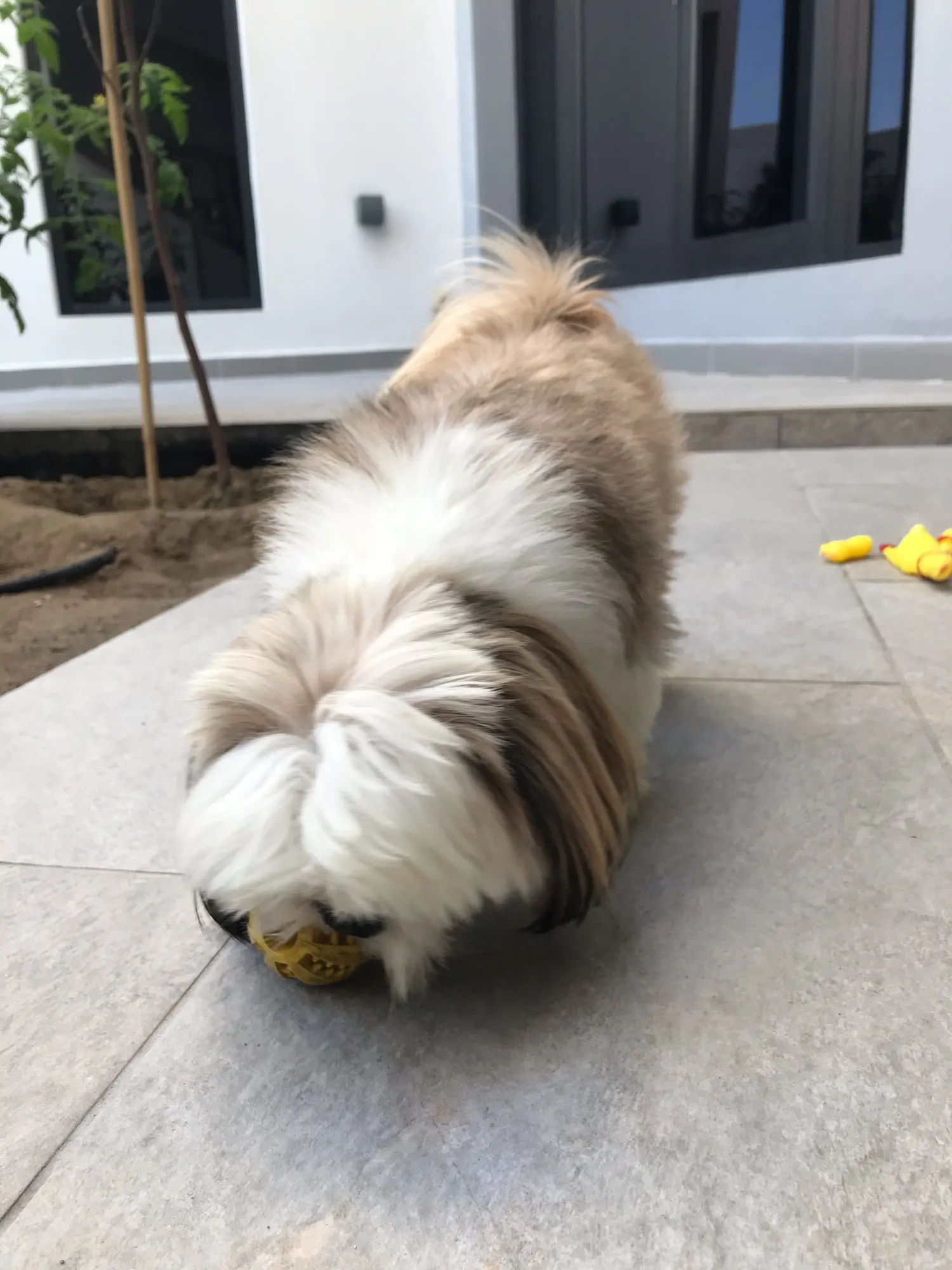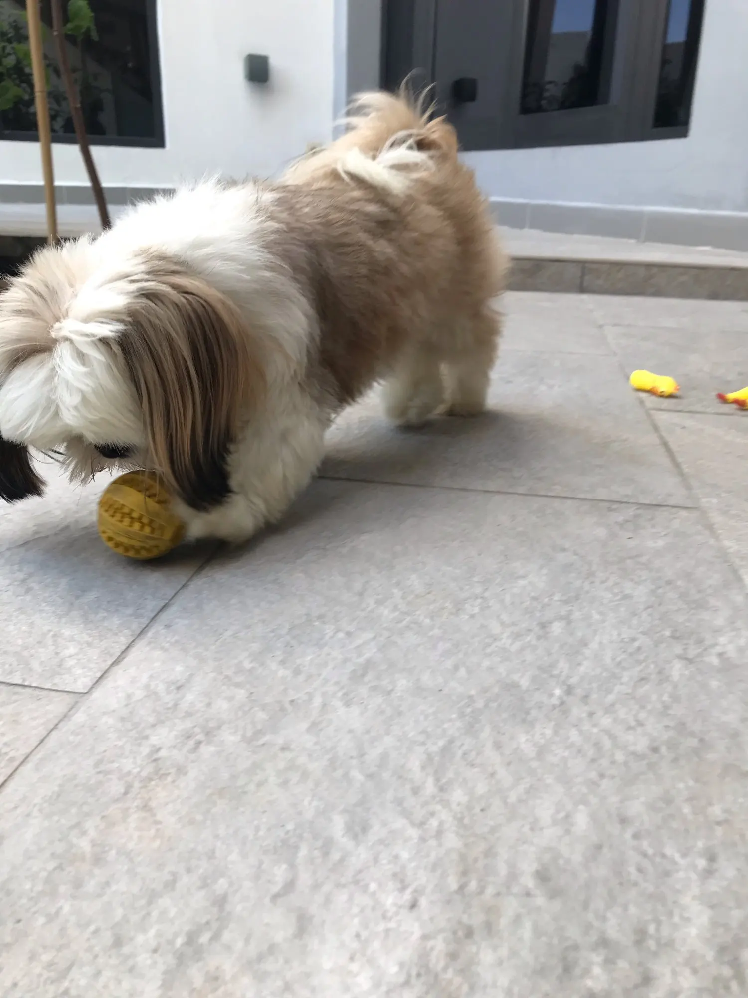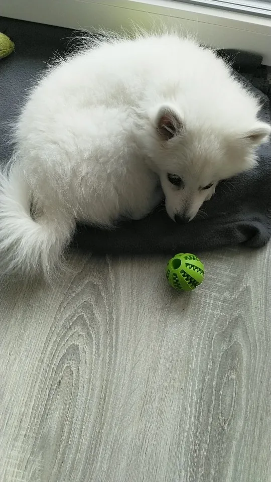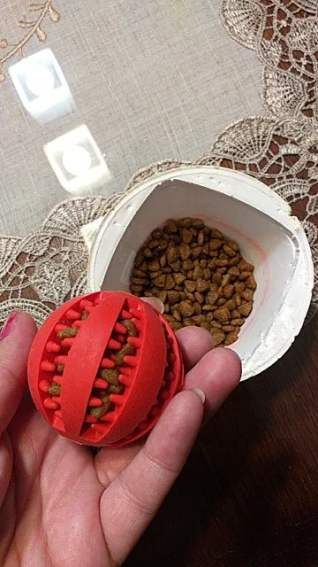 Моему шпицу понравилось играть с этим, особенно, если спрятать в нее корм