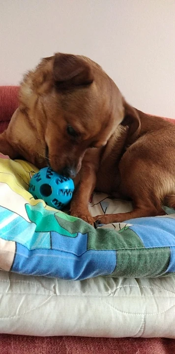 Очень хорошая игрушка для собаки, надев закуски, делает собак занятыми на некоторое время, особенно если это первый раз, играя с такой игрушкой.
