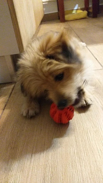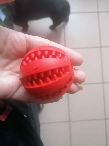 Хороший мячик, легкий, резина не очень твердая. Внутрь можно прятать корм. Щенку нравится.