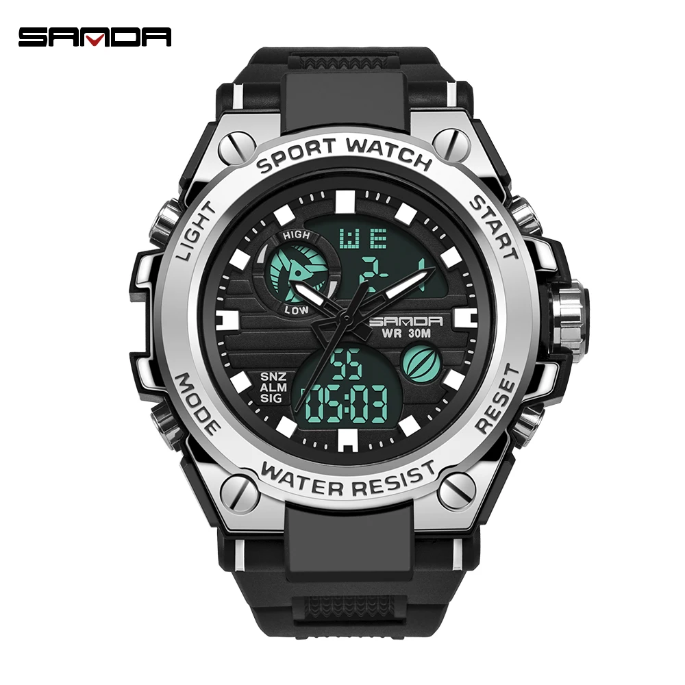 SANDA брендовые наручные часы, мужские часы, военные армейские спортивные Стильные наручные часы, двойной дисплей, мужские часы для мужчин, часы, водонепроницаемые часы