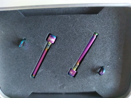Хорошая презентация продукта, хорошие винты и они впечатляют. Всегда затягивайте их динамиком. В самой коробке есть наклейка с подходящей парой затяжек. Перед тем, как надеть их, рекомендуется: 1. Очистите нить, где вы собираетесь ее скрутить. 2. Выбрасывайте медный жир на резьбу титана (чтобы избежать ужасной коррозии и без гриппа). 3. Соблюдайте пару затяжек с динамиком.