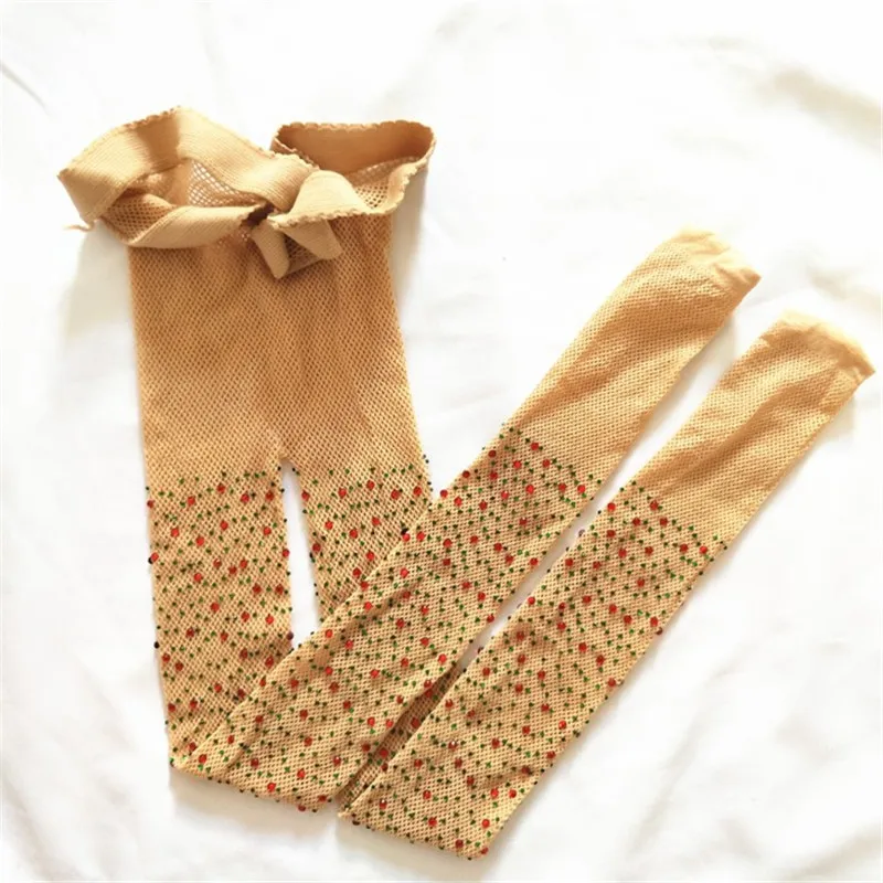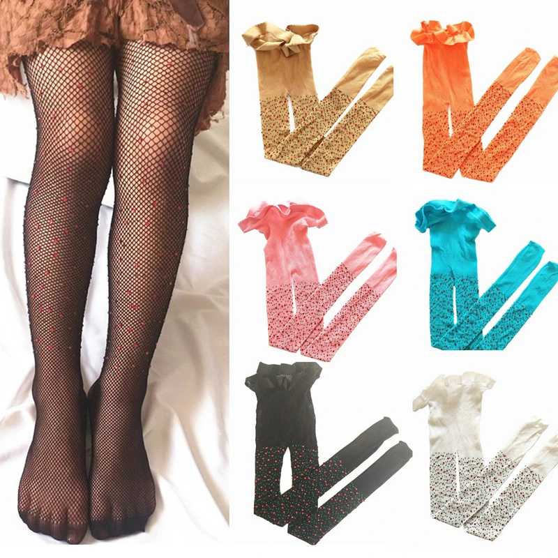 Pudcocoколготки в сеточку с рыбками для маленьких девочек колготки в сеточку с красными бриллиантами милые колготки в полоску для детей, детские От 7 до 10 лет