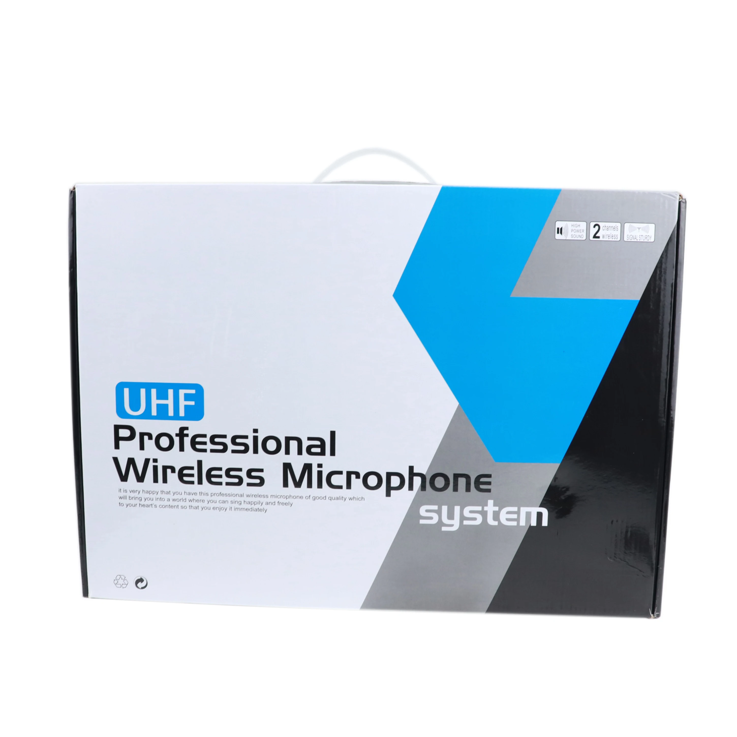 1. Используя диапазон частот UHF645-695MHz, два канала принимают сигналы независимо. Каждый канал имеет 100 дополнительных каналов, чтобы избежать частоты помех.