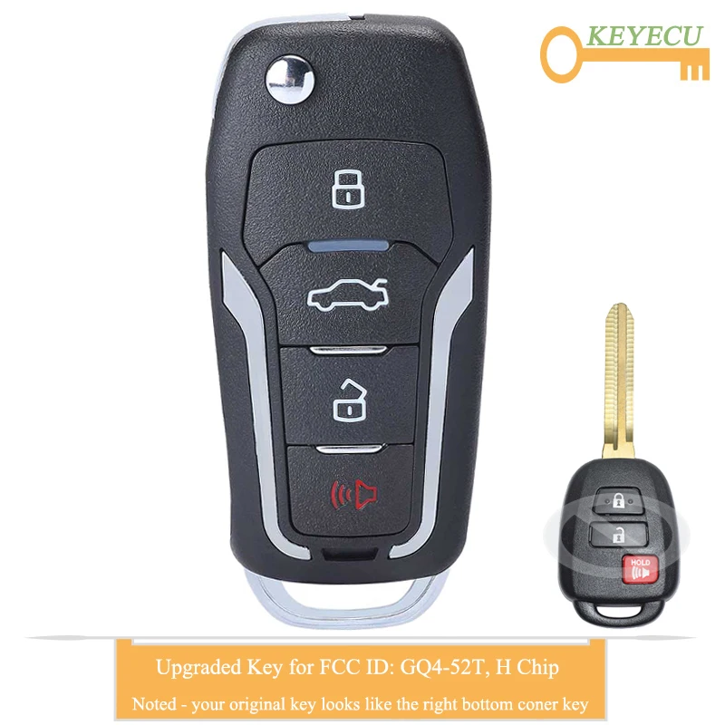 Обновленный складной пульт дистанционного управления KEYECU для автомобилей Toyota RAV4 Highlander Tacoma, Fob 2 + 1 3 кнопки-H Chip - FCC ID: GQ4-52T