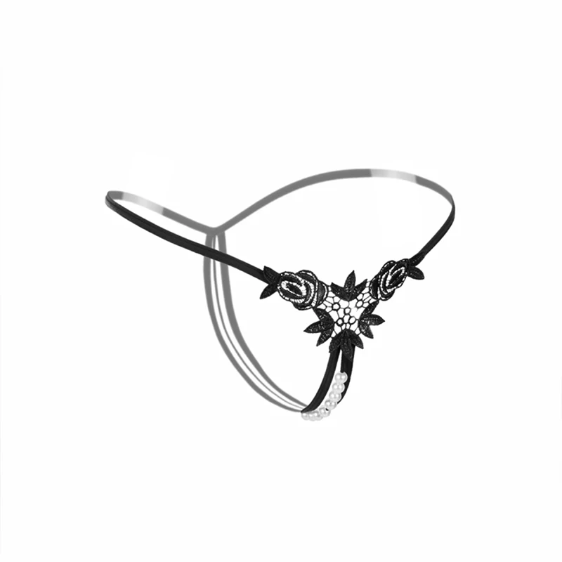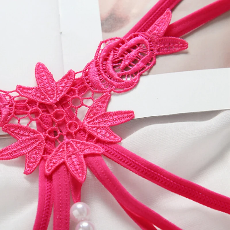 Стринги женские кружевные с вышивкой, стринги с жемчугом, трусики с...