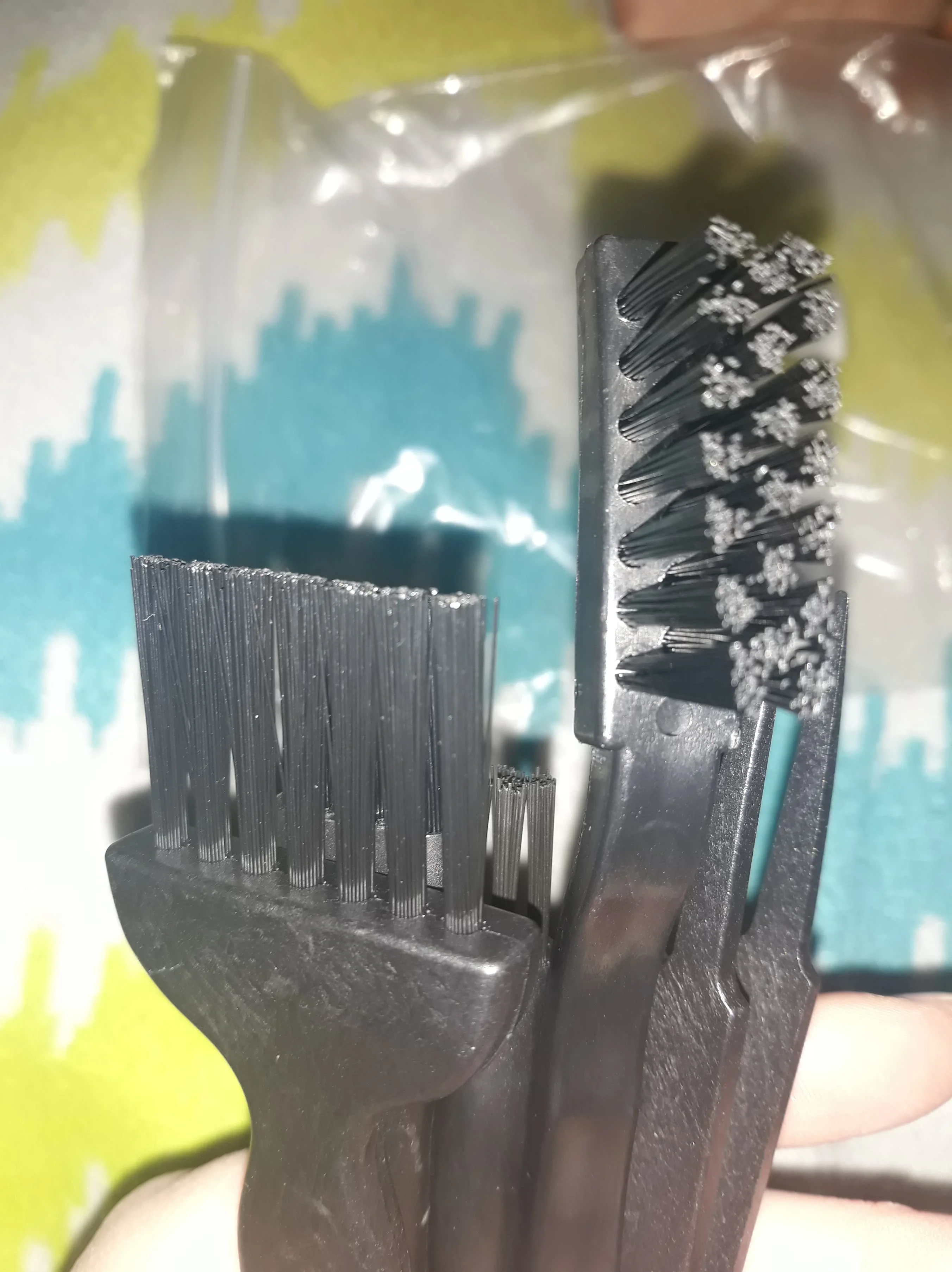 Кисточки жёсткие, брал для мытья печатных плат. качество хорошее, щетина не лезет. Доставка 20 дней.