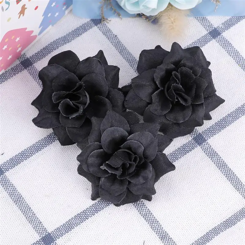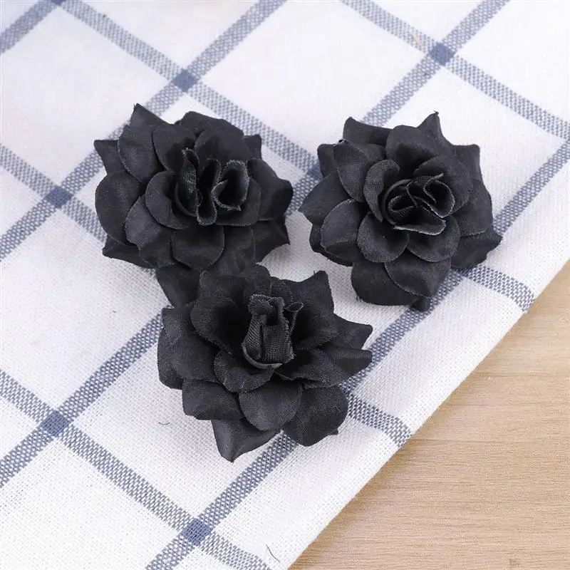 50 шт., шелковые цветы, искусственные черные розы, шелковые головки цветов сделай сам, свадебное украшение для дома, праздничные аксессуары, праздничные принадлежности