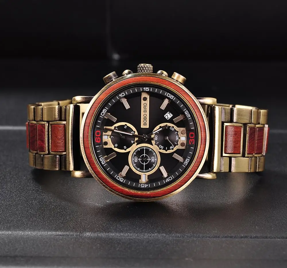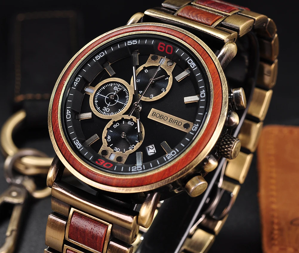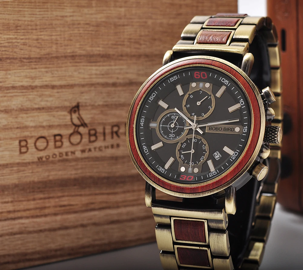 1 x деревянные часы BOBO BIRD 1 деревянная Подарочная коробка для часов 1 инструмент для регулировки ремешка часов