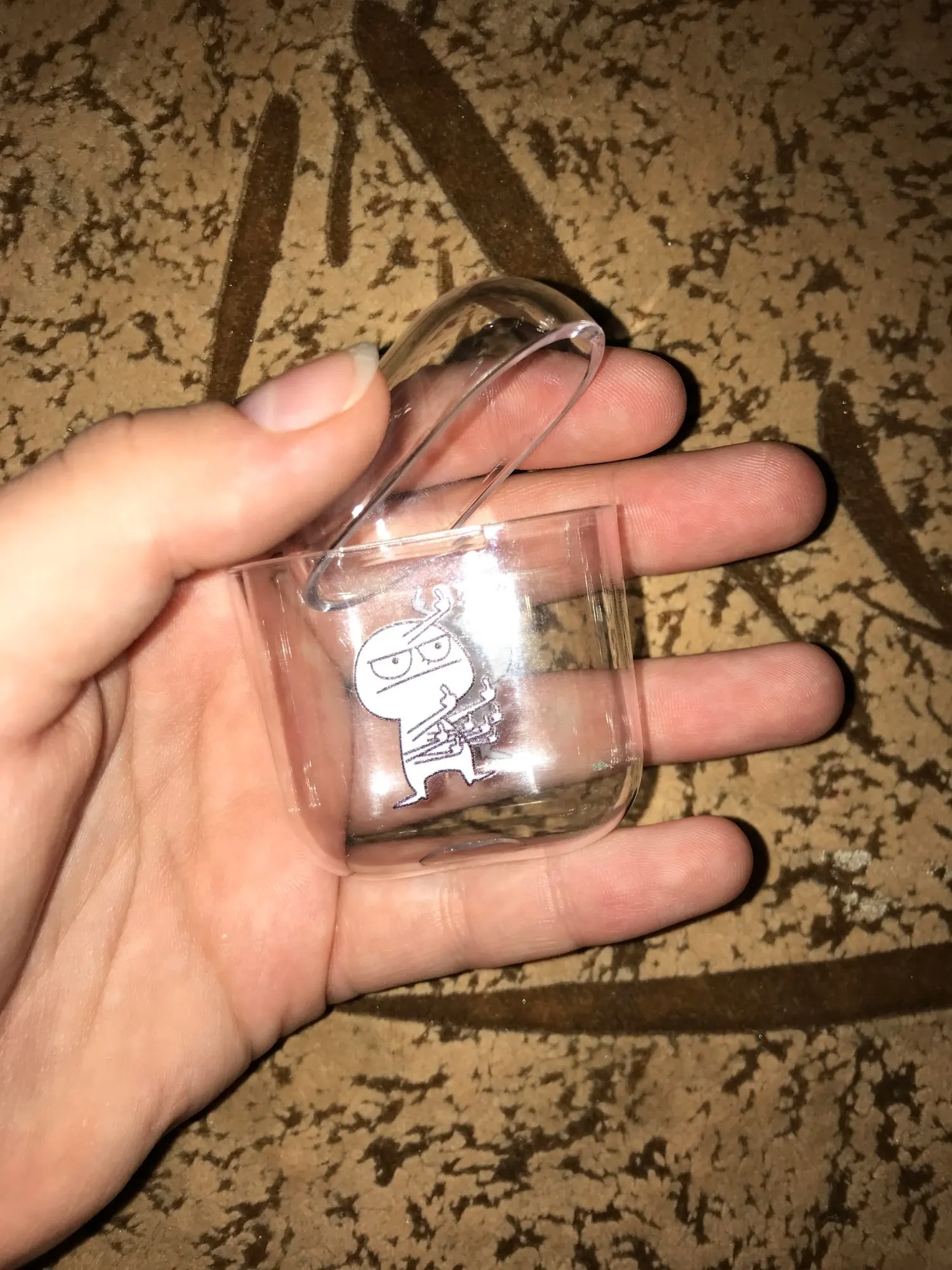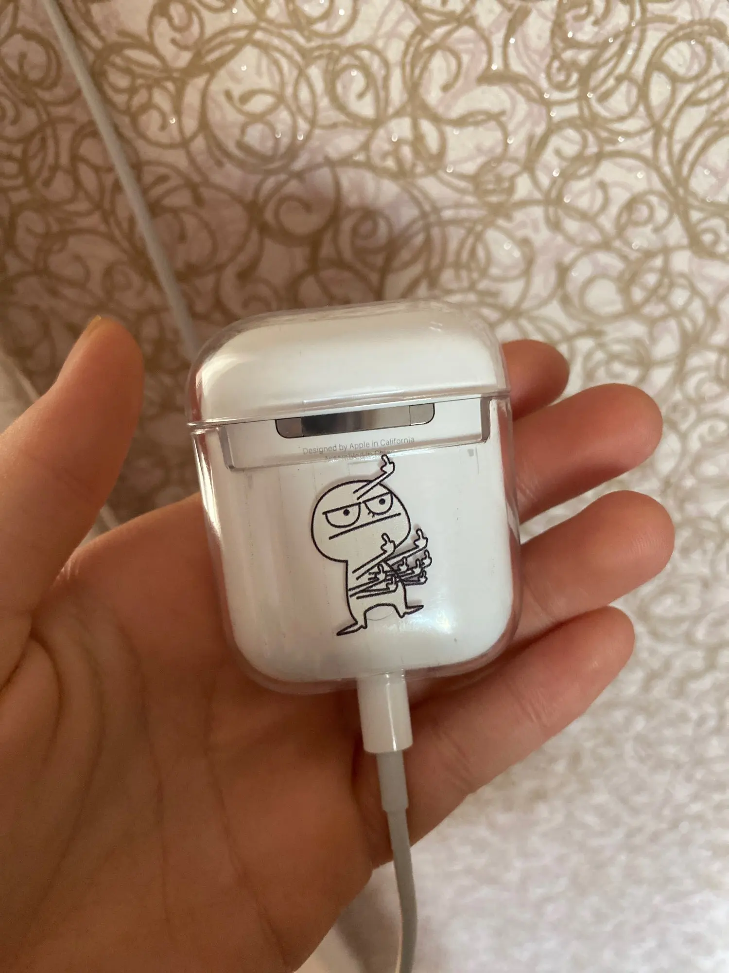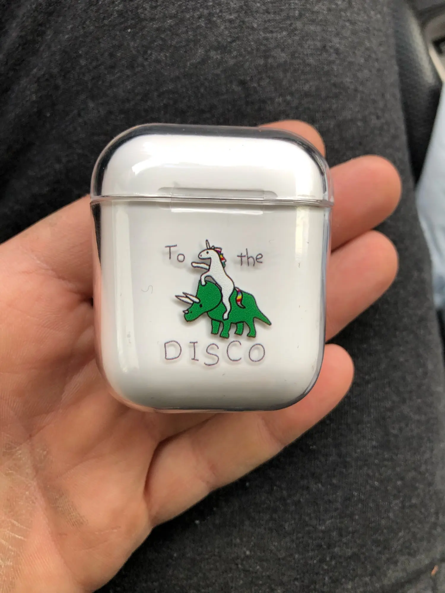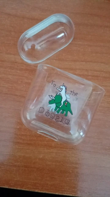 Это абсолютно отличный продукт, Забавный и милый в то же время. Немного сложно положить в него корпус AirPod, но это не проблема! Прибыло в течение нескольких недель. Рекомендую! :)