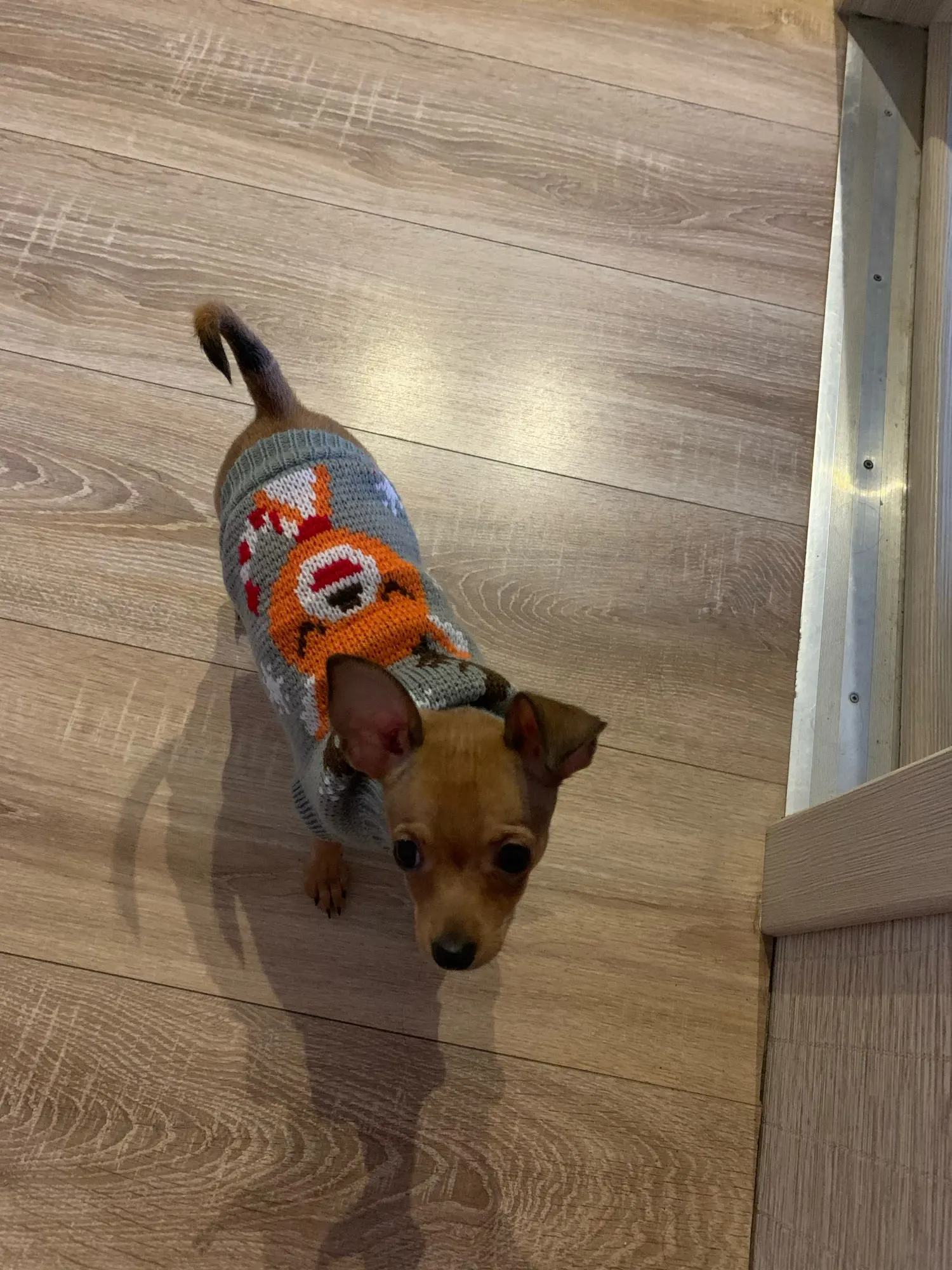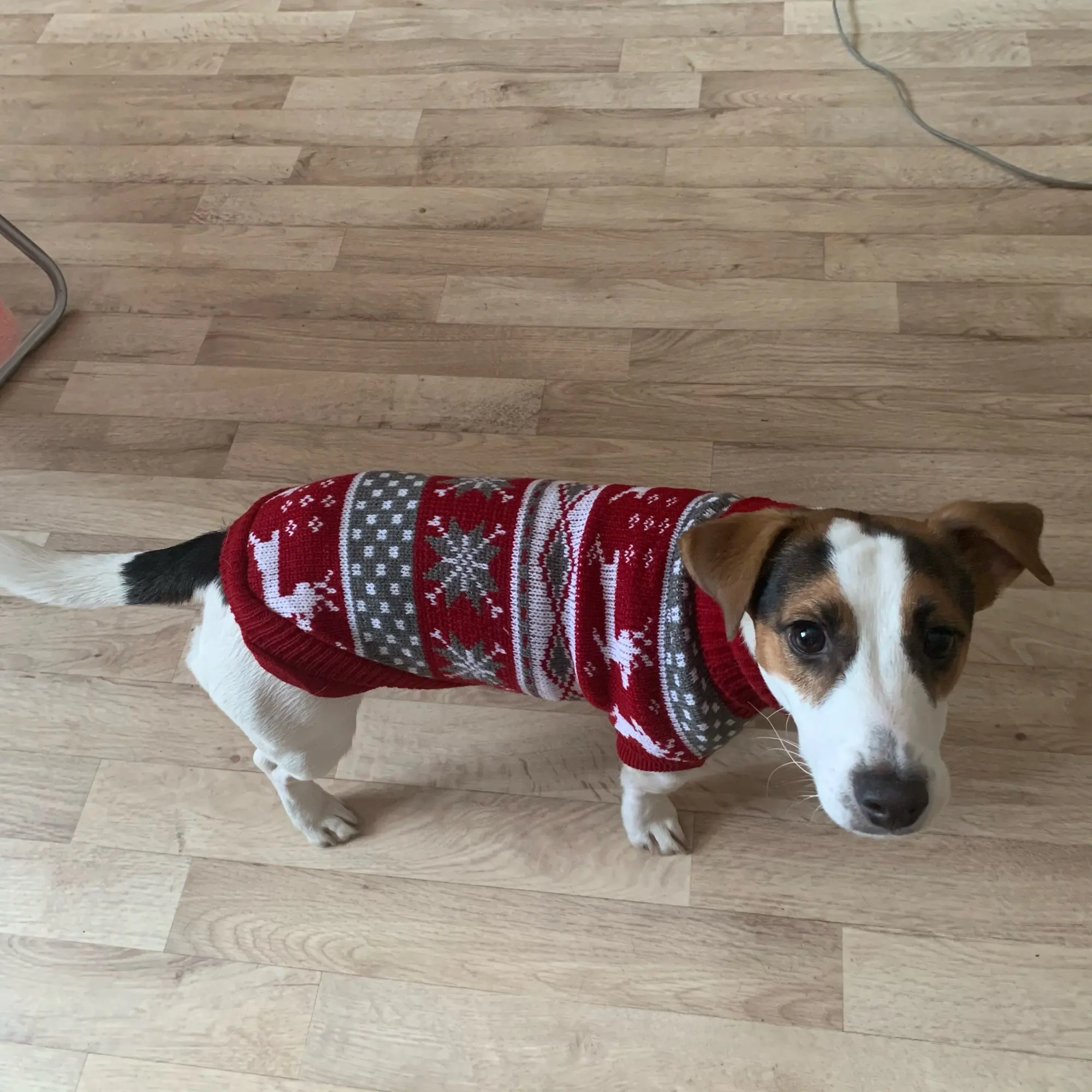 Это прибыло так быстро, что это был такой Забавный сюрприз! Идеально, когда мы получим нашего щенка для ее Рождественской одежды!