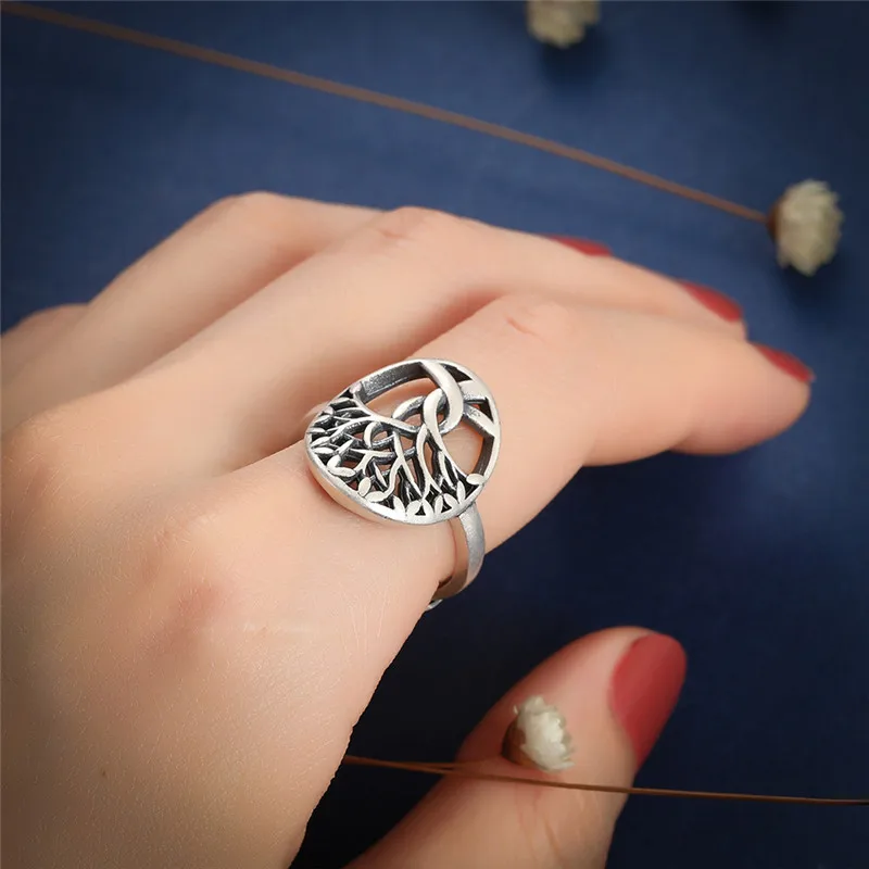 Женское кольцо с растениями V.YA S990, открытое серебряное кольцо с деревом, регулируемое ювелирное изделие