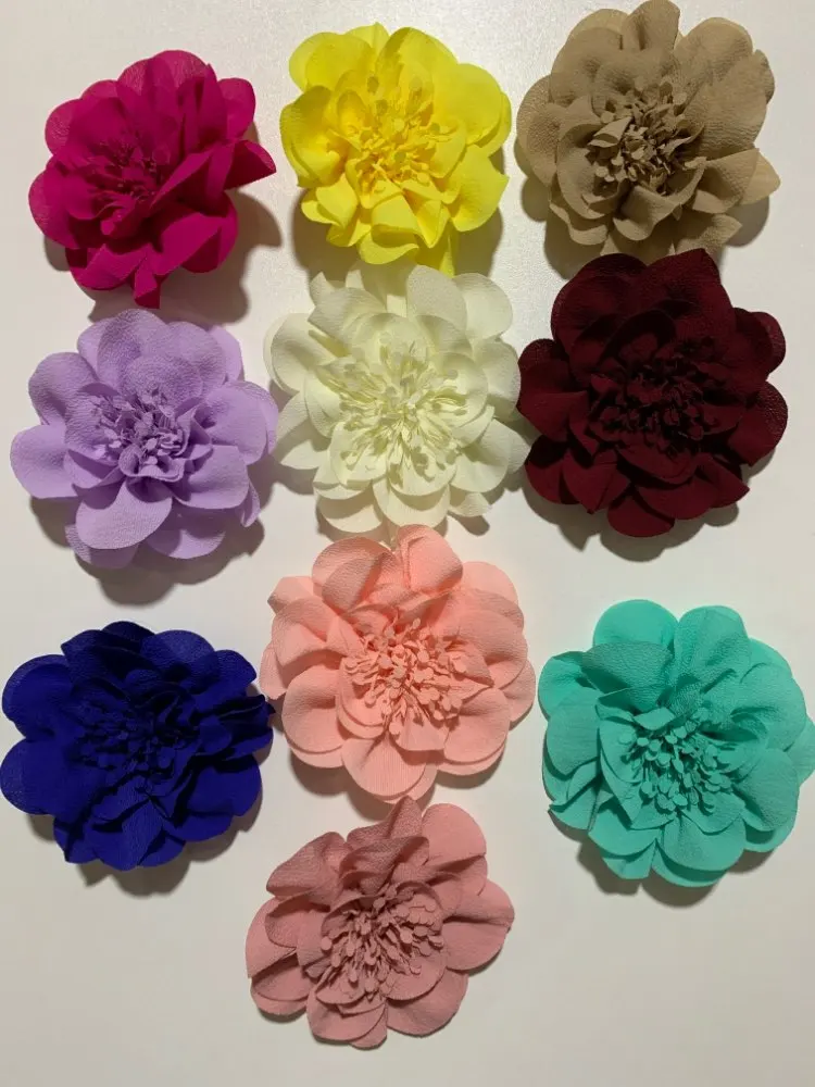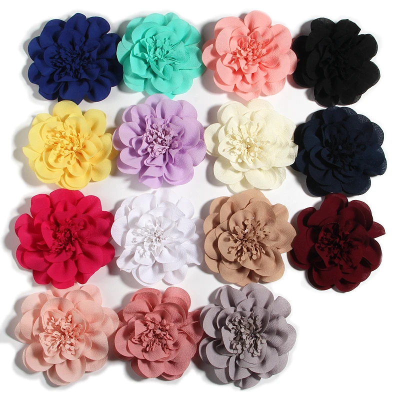 5 шт 10 см 3,8 "с большими шифоновыми цветами для заколки, аксессуары ручной работы искусственные цветы из ткани с цветочным принтом для детей, девочек, с изображением головы заколки для волос