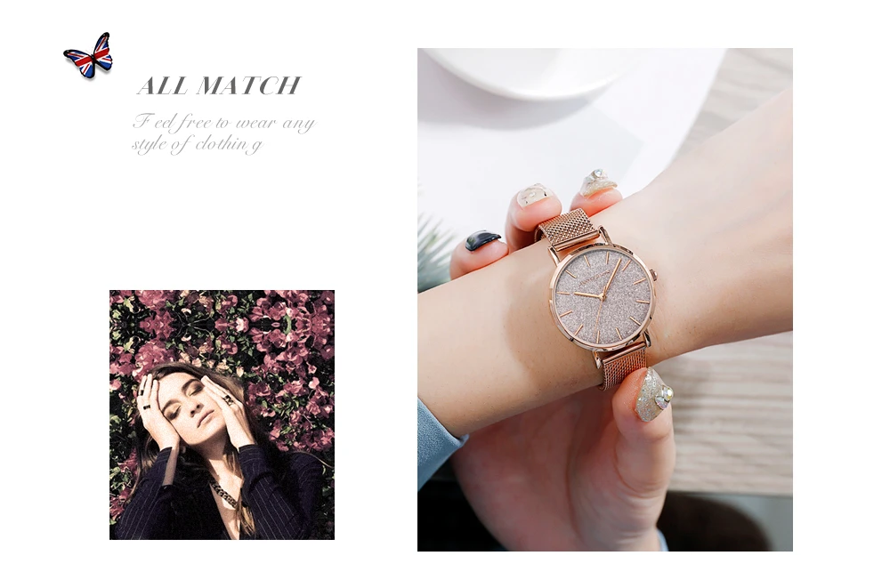 Часы наручные женские с сетчатым браслетом из нержавеющей стали, бр...