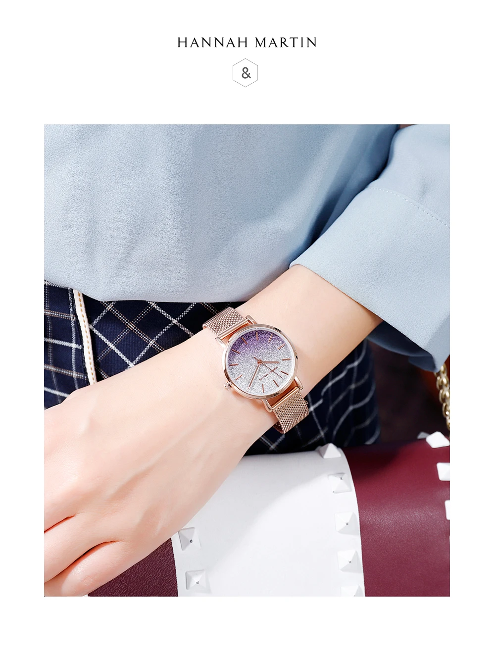 Женские наручные часы с японским движением Hannah Martin, браслет с градиентным цветом