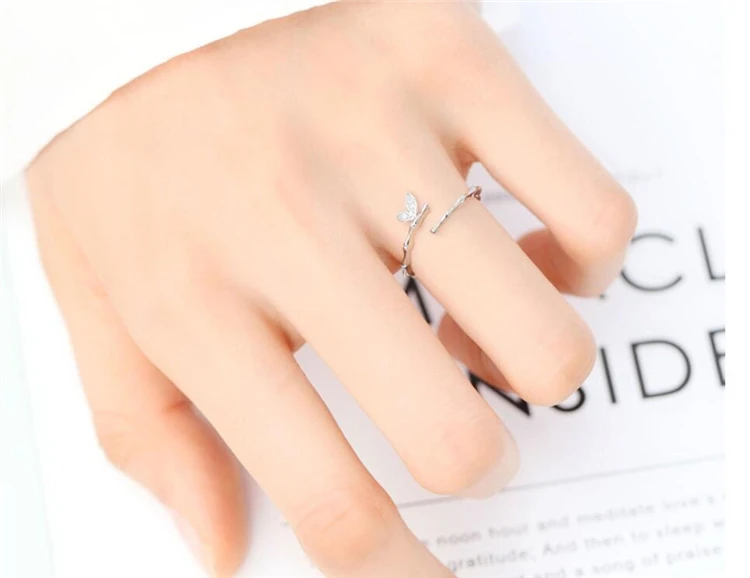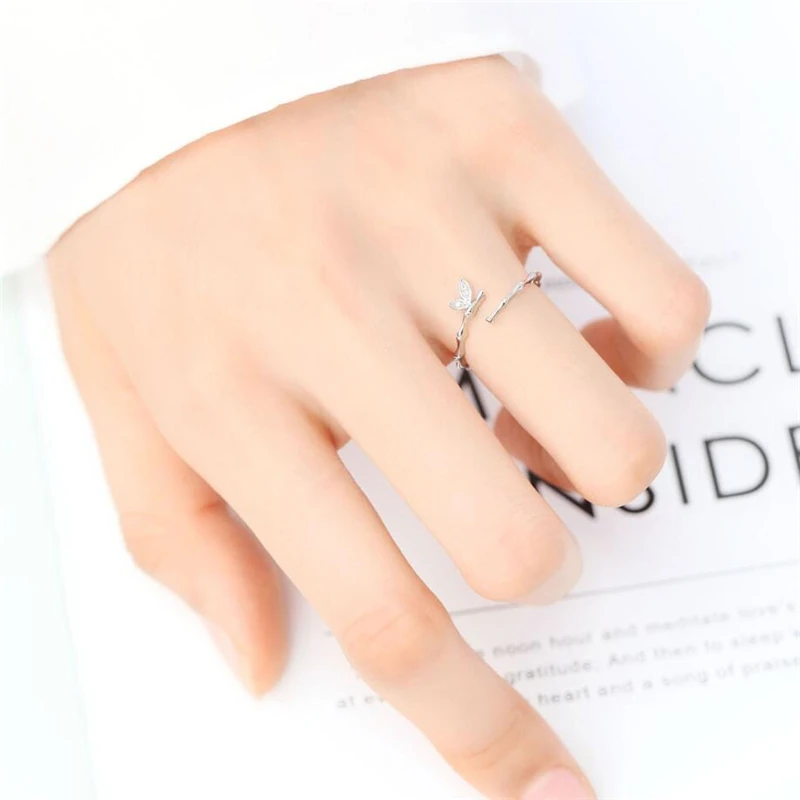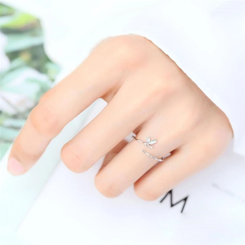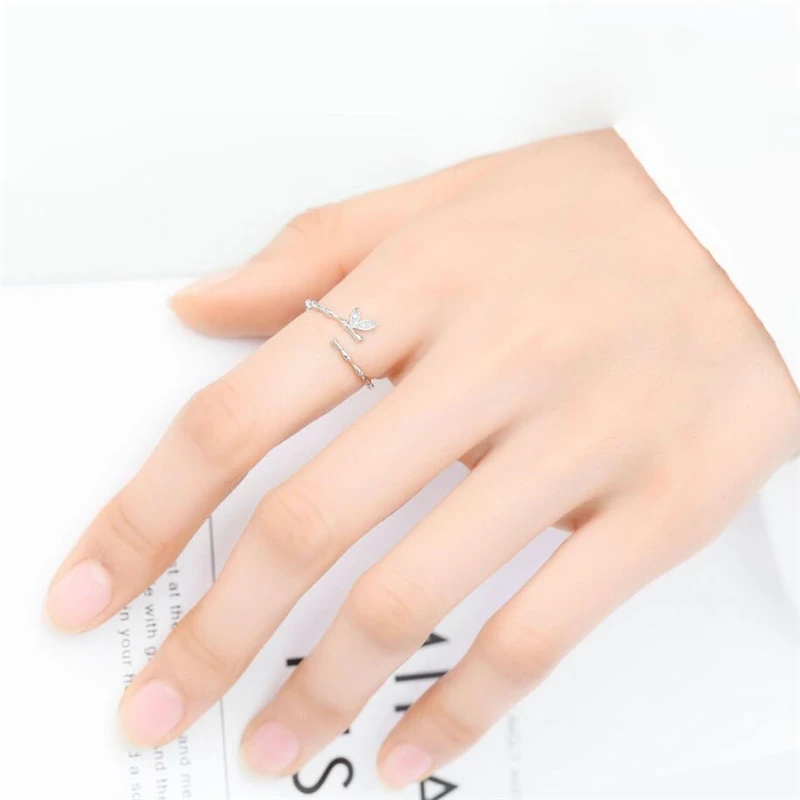 Женские кольца из серебра 925 пробы, регулируемого размера, с листьями циркония