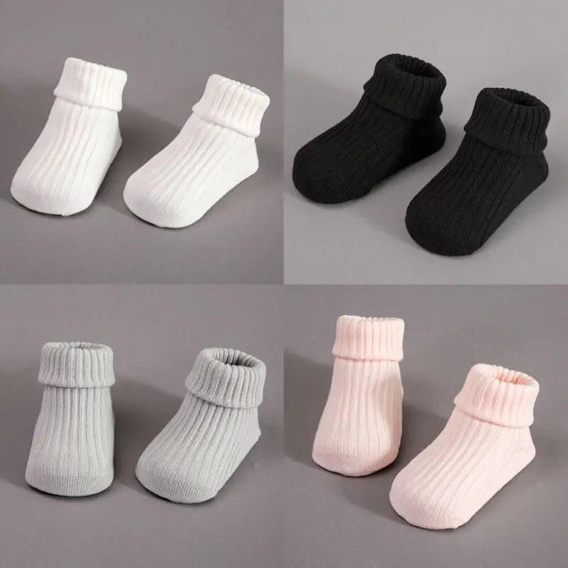 От 0 до 3 лет, милые носки для маленьких мальчиков и девочек Однотонные Хлопковые вязаные теплые толстые нескользящие носки-тапочки для малышей