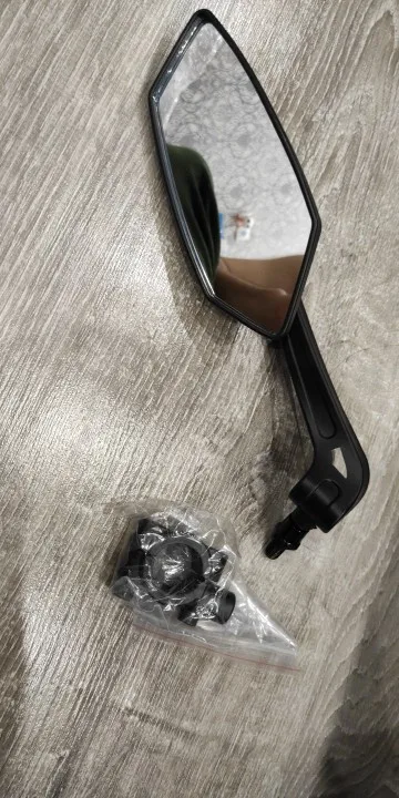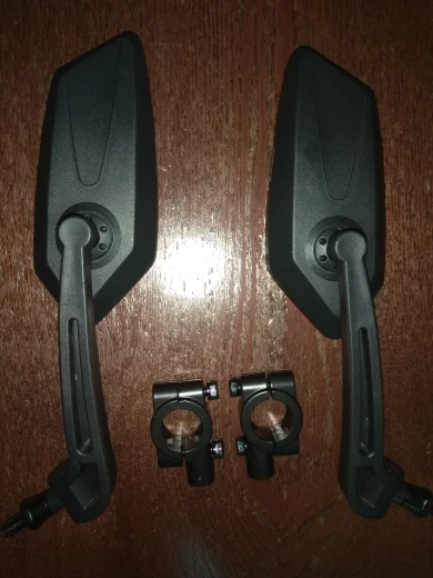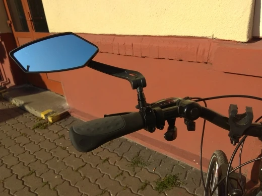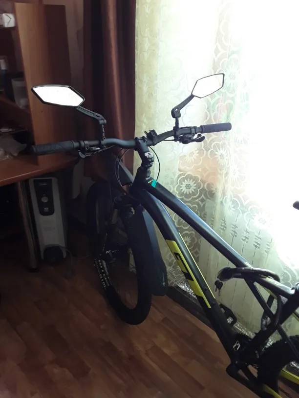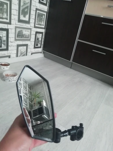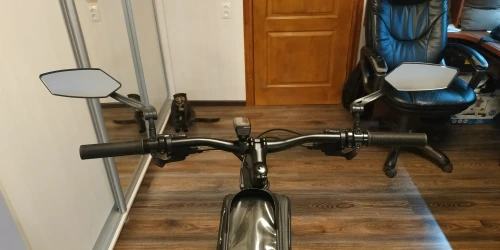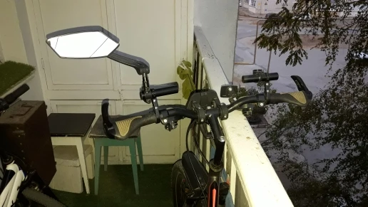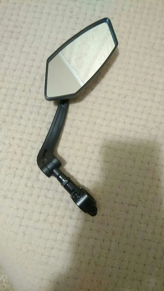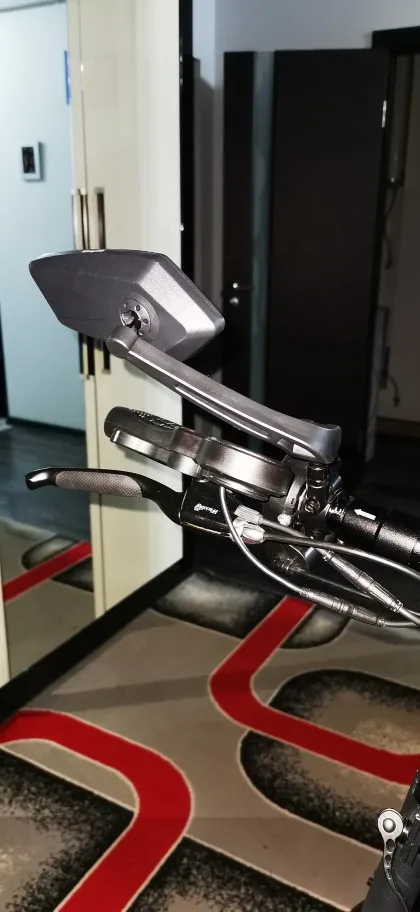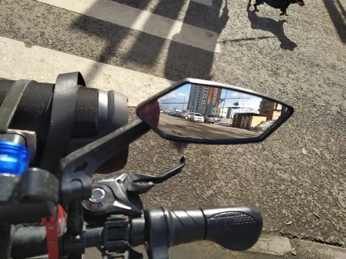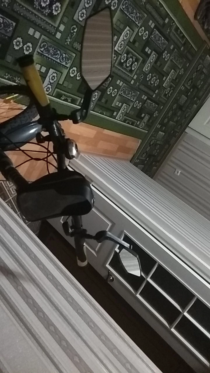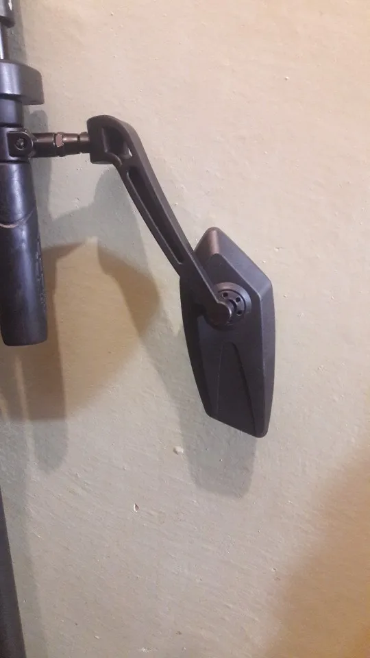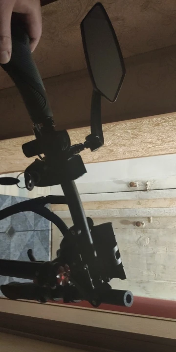 Сегодня попробовал зеркало. Отличный обзор заднего вида. Зеркало красивое и под дизайн моего велосипеда. Из минусов. 1. Нет резинового уплотнителя и при монтаже руль будет поцарапан. 2. Короткие винты. Если дать уплотнитель, то винты менять. Я поставил на 5 мм длиннее. 3. Пластмассовый держатель. Чтоб хорошо было видно зеркало надо вынести немного за руль, но им легко зацепиться. Вероятно, его легко сломать. Надо было металлическое крепление делать всё. На фотографиях видно как это выглядит. Ещё раз отмечу, что в дороге идеальный обзор и ломаный дизайн это не для красоты, а реально улучшает обзор. Несмотря на минусы зеркалом очень доволен.