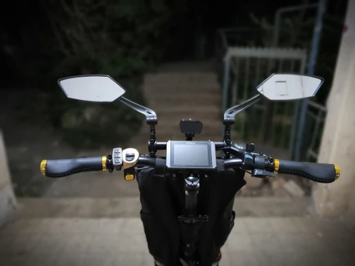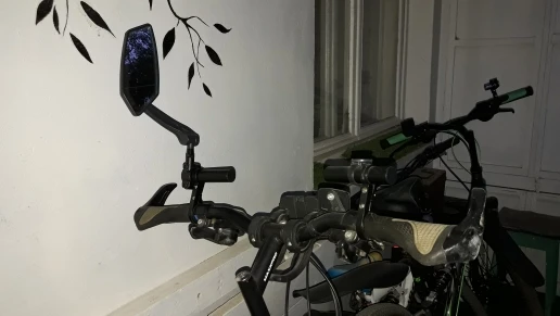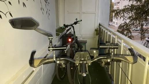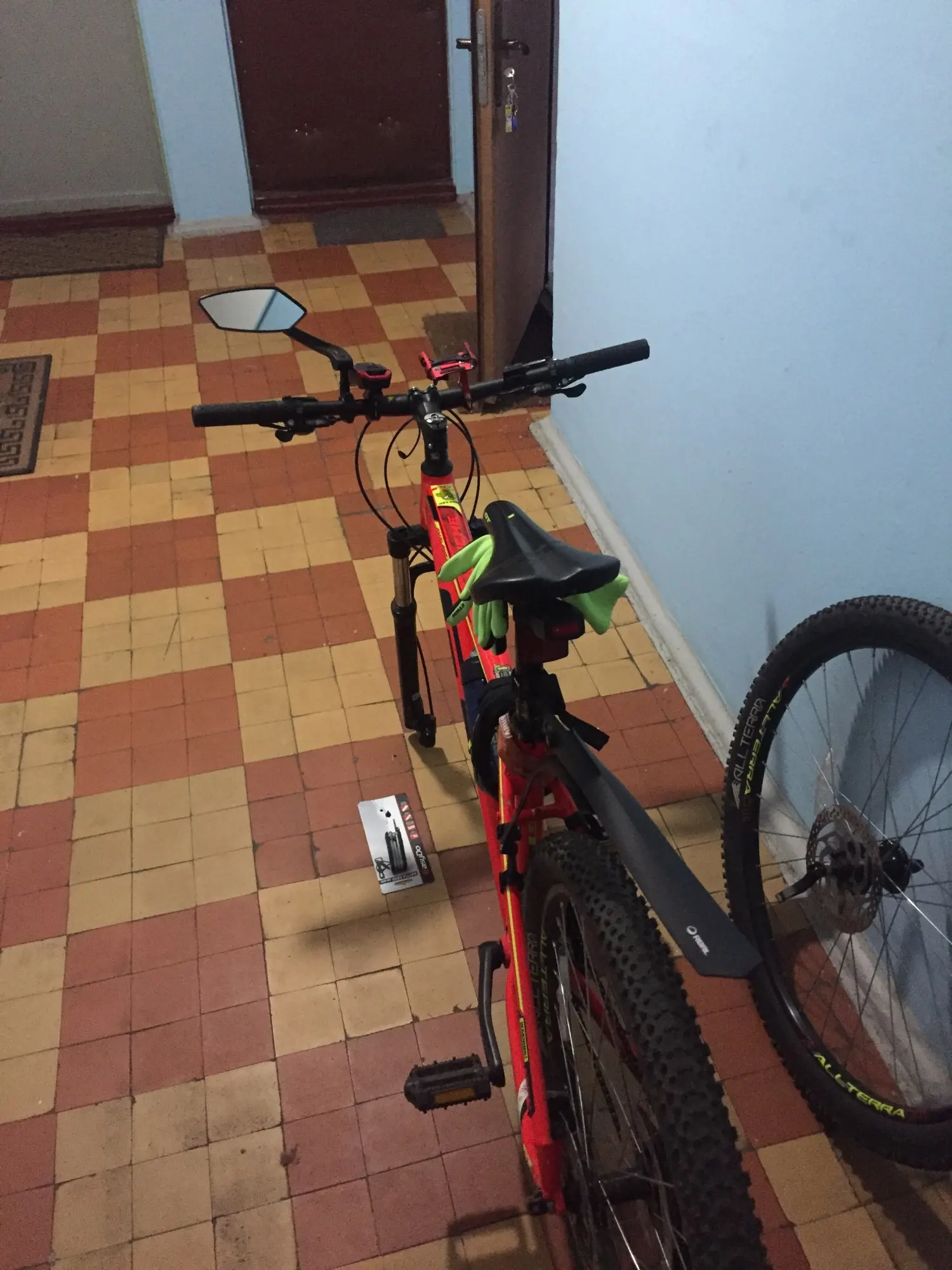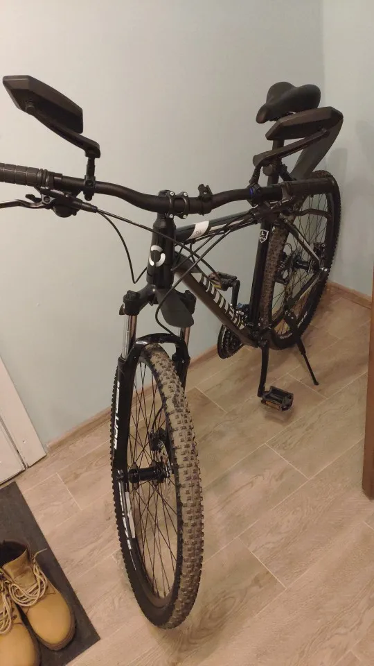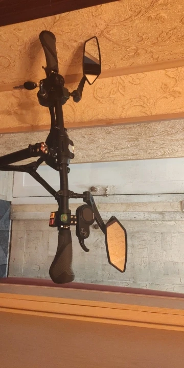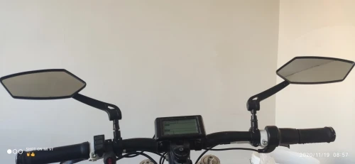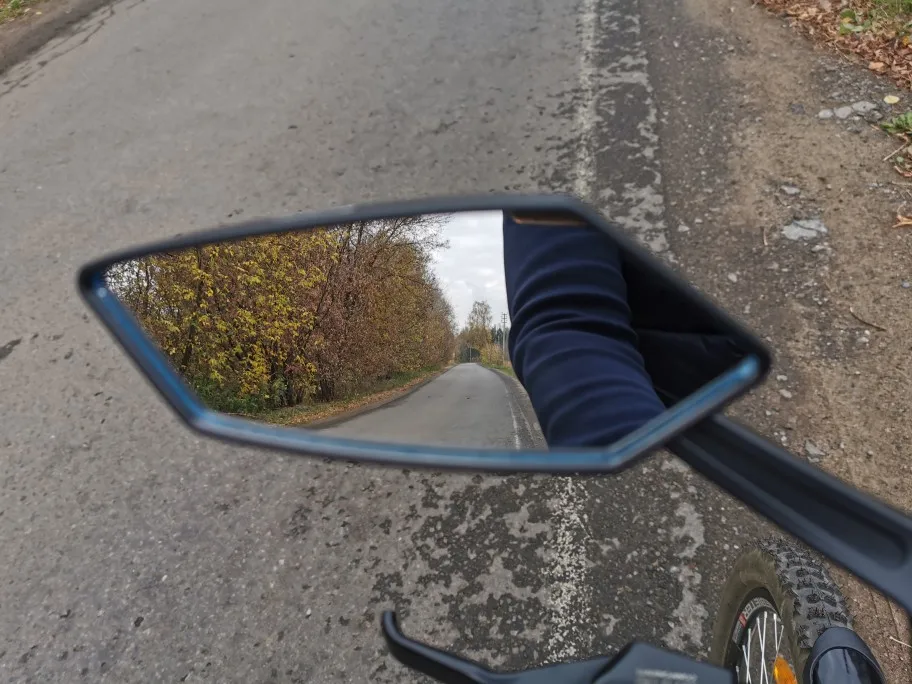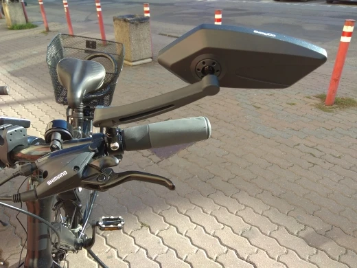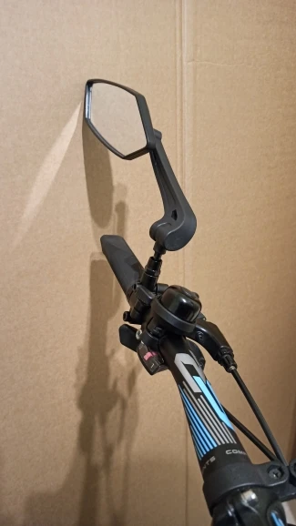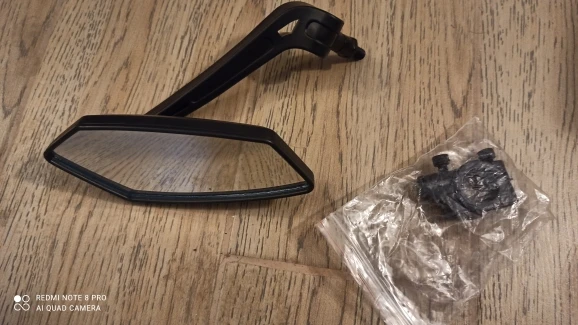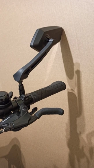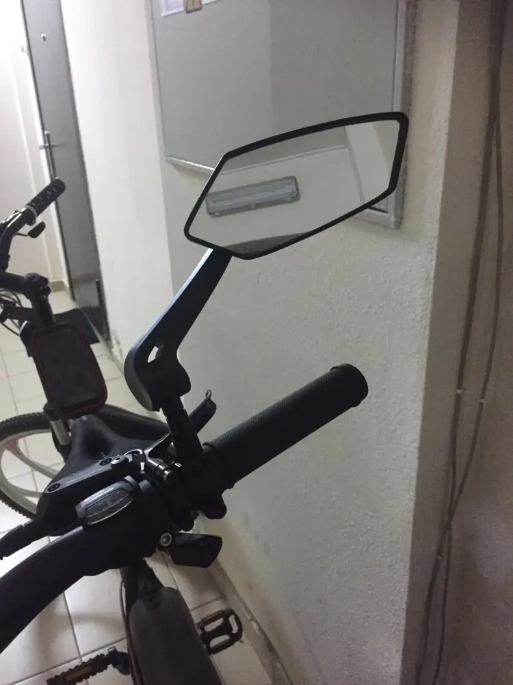 Сегодня попробовал зеркало. Отличный обзор заднего вида. Зеркало красивое и под дизайн моего велосипеда. Из минусов. 1. Нет резинового уплотнителя и при монтаже руль будет поцарапан. 2. Короткие винты. Если дать уплотнитель, то винты менять. Я поставил на 5 мм длиннее. 3. Пластмассовый держатель. Чтоб хорошо было видно зеркало надо вынести немного за руль, но им легко зацепиться. Вероятно, его легко сломать. Надо было металлическое крепление делать всё. На фотографиях видно как это выглядит. Ещё раз отмечу, что в дороге идеальный обзор и ломаный дизайн это не для красоты, а реально улучшает обзор. Несмотря на минусы зеркалом очень доволен.