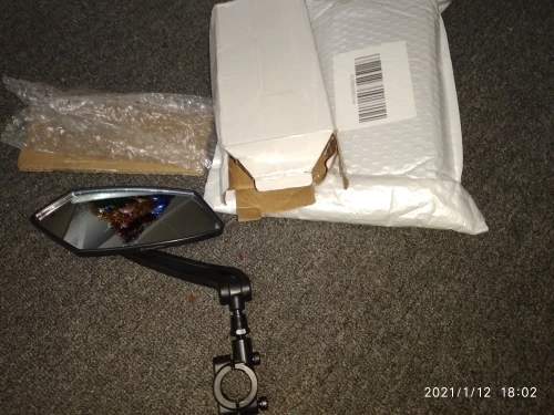 Прибыло всё в отличном состоянии,отслеживание.Отличные зеркала при движении нет такого дрожения отлично видно.Крепить как можно ближе к ручке.Отличный товар,отличный продавец.Спасибо