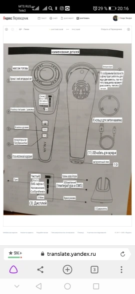 Доставка быстрая, коробка пришла немного мятая, но полностью запакованная. В связи с чем, на подарок такая вещь не пойдёт. Сам прибор без изъянов. С продавцом не общалась, не было необходимости. Прибор пришёл полностью заряженный. Сразу на руке проверила все функции: греет, холодит, вибрирует, красный и синий цвет горит, емс токи не почувствовала ( наверное потому что нужно делать на лице с проводниковым гелем). Самый большой минус, конечно, это инструкция, которая не понятная от слова «совсем». Написано вроде на английском, но на таком «ломаном» и дилетантском, что разораться крайне сложно. Это же технический прибор, а не платье, скажем, с множеством функций! Могли бы и инструкцию нормальную составить хотя бы на одном из языков. А так методом научного тыка только и разбираться. Только из-за инструкции снимаю звезду.