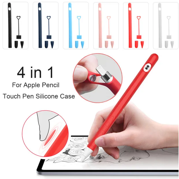 Цветной Мягкий силиконовый чехол 4 в 1 для сенсорного пера Apple Pencil, совместимый с планшетом iPad, защитный чехол для стилуса, аксессуар