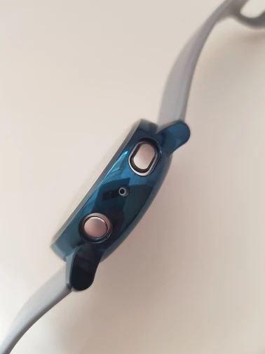 Чехол как в описании,силиконовый,не стекло. Садится плотно,все отверстия подходят. Единственное,что меня напрягает,это мелкие точки,которые всегда видны,особенно на черных темах циферблата. А свою прямую функцию выполняют хорошо,часы полностью защищены и не сильно предают объема.