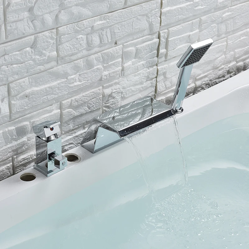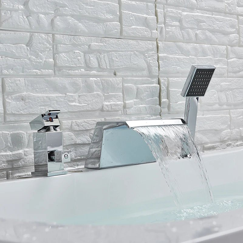 Смеситель для ванны Водопад 3 шт. смеситель для раковины широкая Ванна смеситель для раковины хромированный латунный кран для ванной душа с Handsho