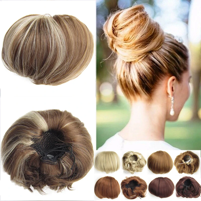 ГРЭС натуральный прямой шиньон термостойкие волокна синтетические волосы куски разных цветов женские булочкишиньон с резинкой