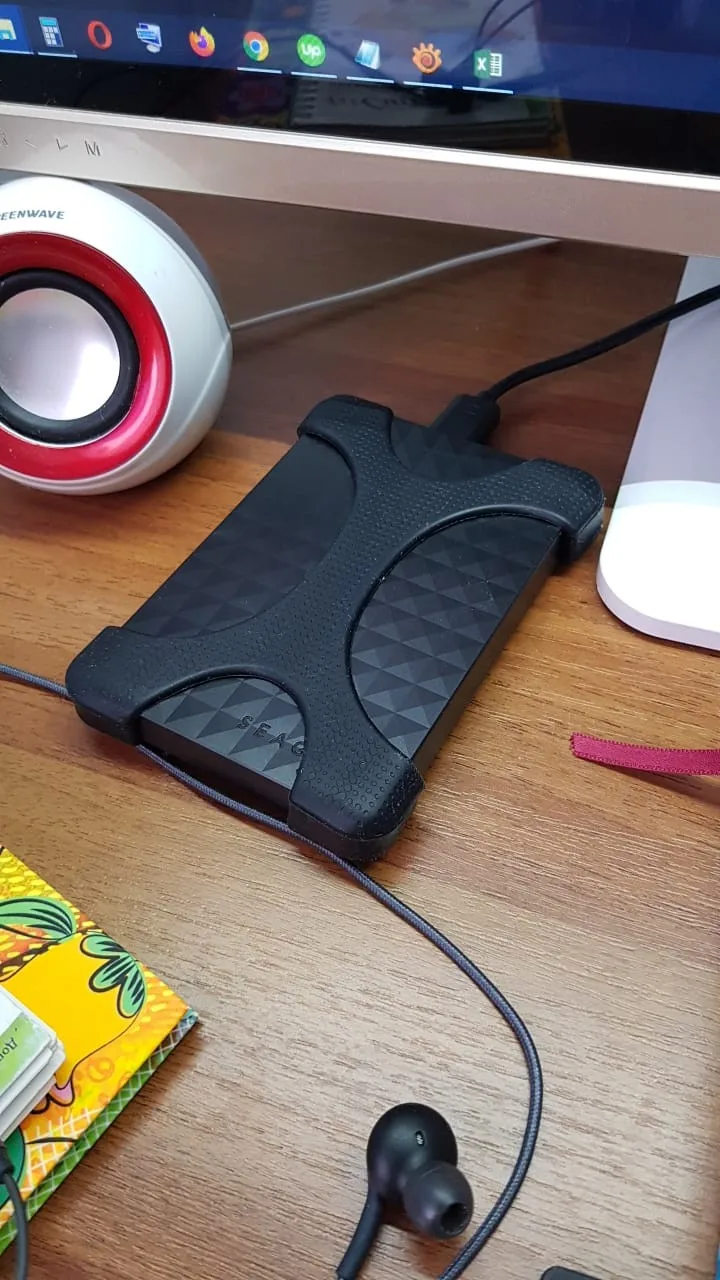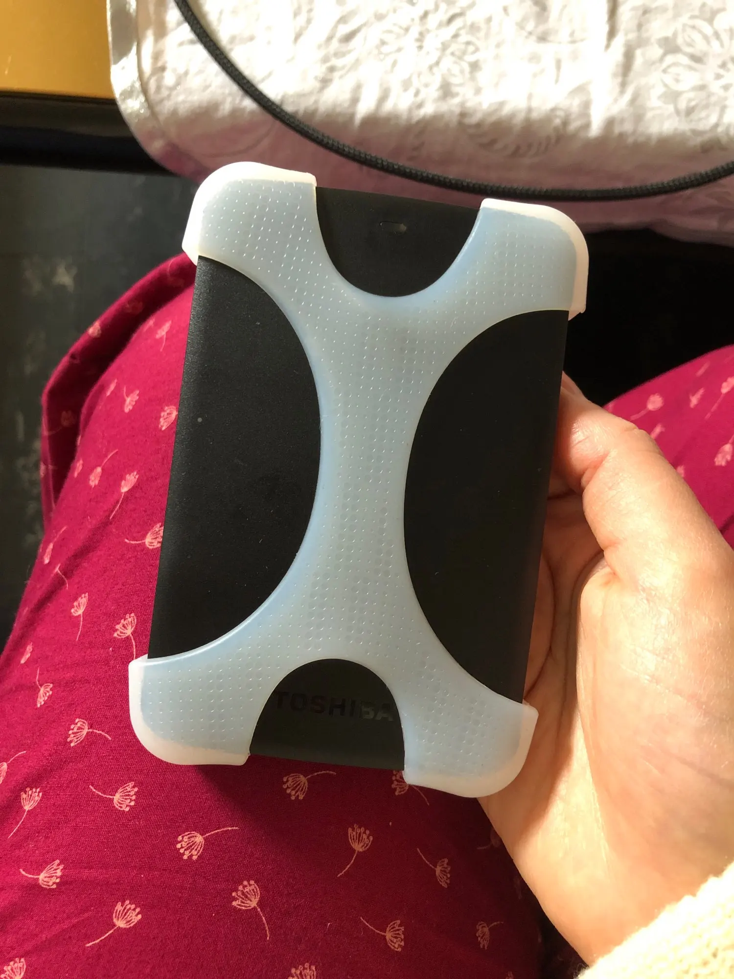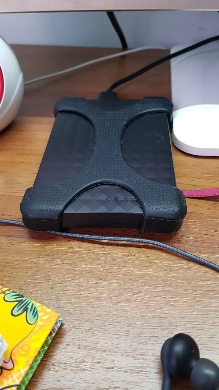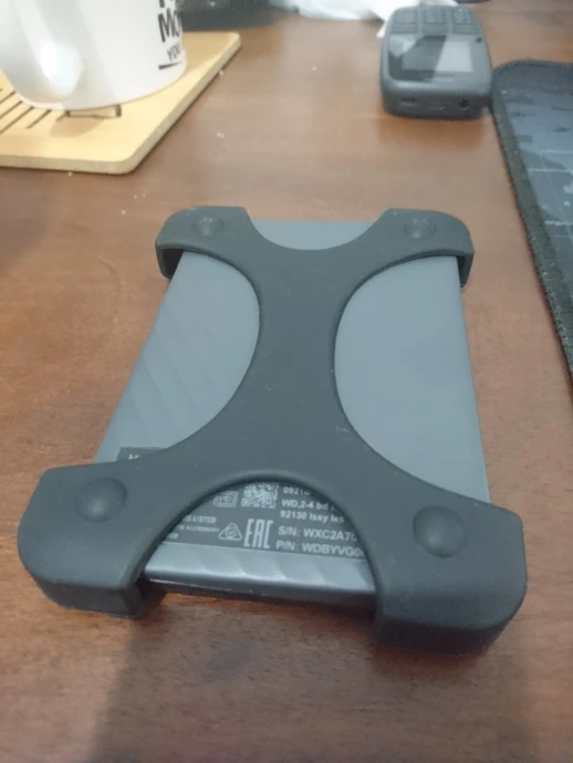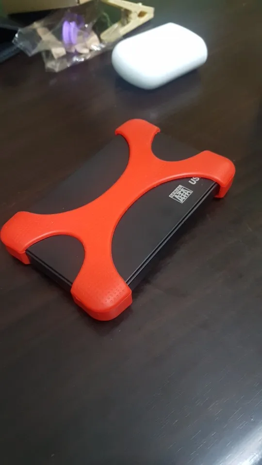 Это похоже на глупость, но я вижу это очень полезно, это защищает углы и заставляет жесткий диск не отрываться от стола