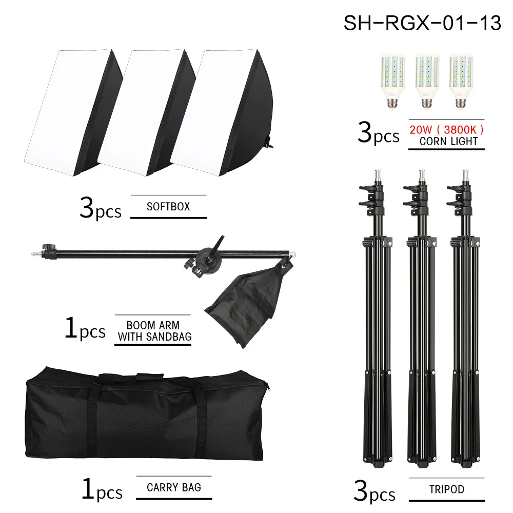 3 шт софтбокс3 шт. штатив1 шт. стрелы с песком1 шт. сумка Оксфорд3 шт. Новый светодиодный 20 Вт лампы