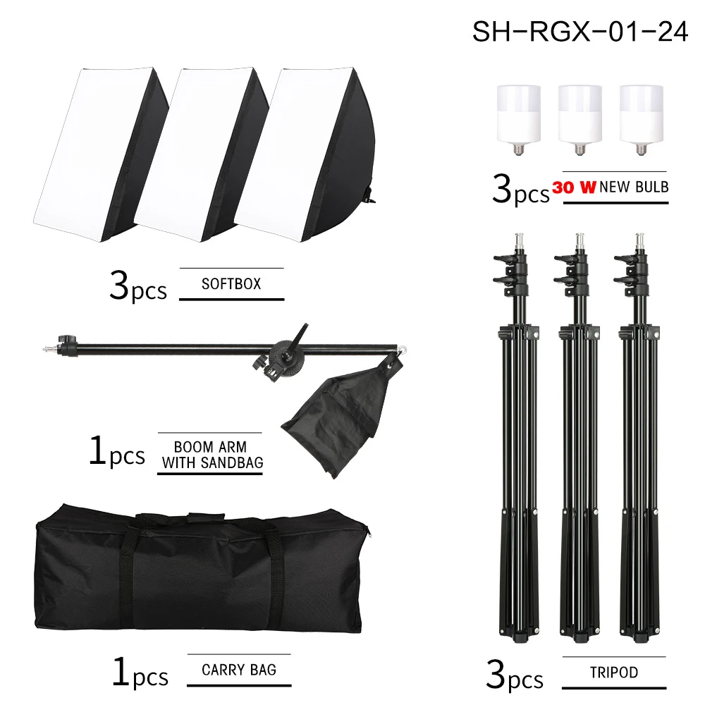 3 шт софтбокс3 шт. штатив1 шт. стрелы с песком1 шт. сумка Оксфорд3 шт. Новый светодиодный 30 Вт лампы