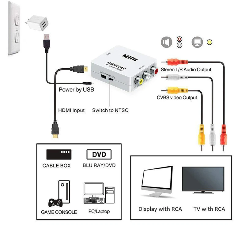 Адаптер для сканера HD видео HDMI-Совместимость с AV конвертером HDMI-Совместимость с RCA AVCVSB LR видео 1080P Поддержка NTSC PAL
