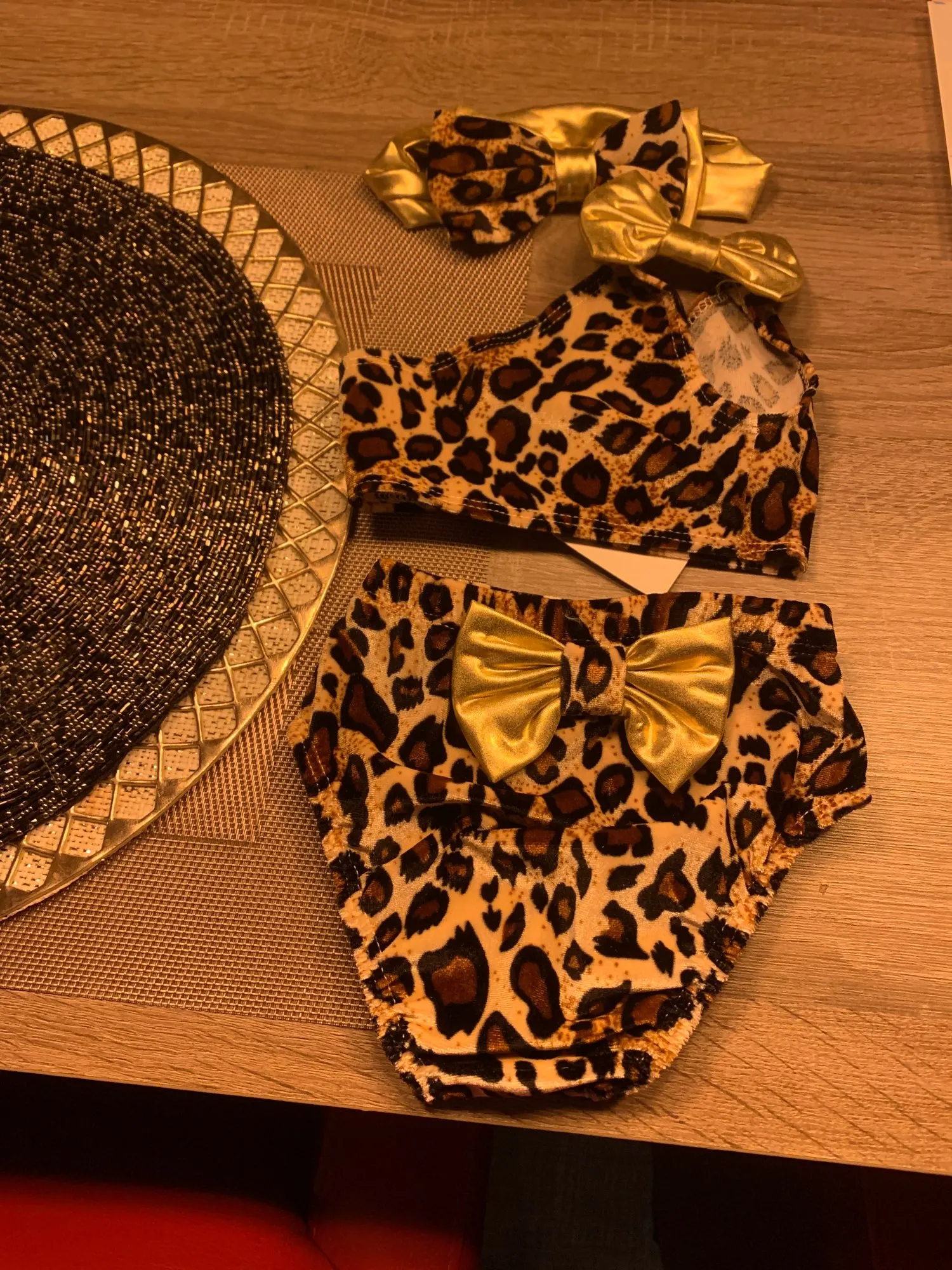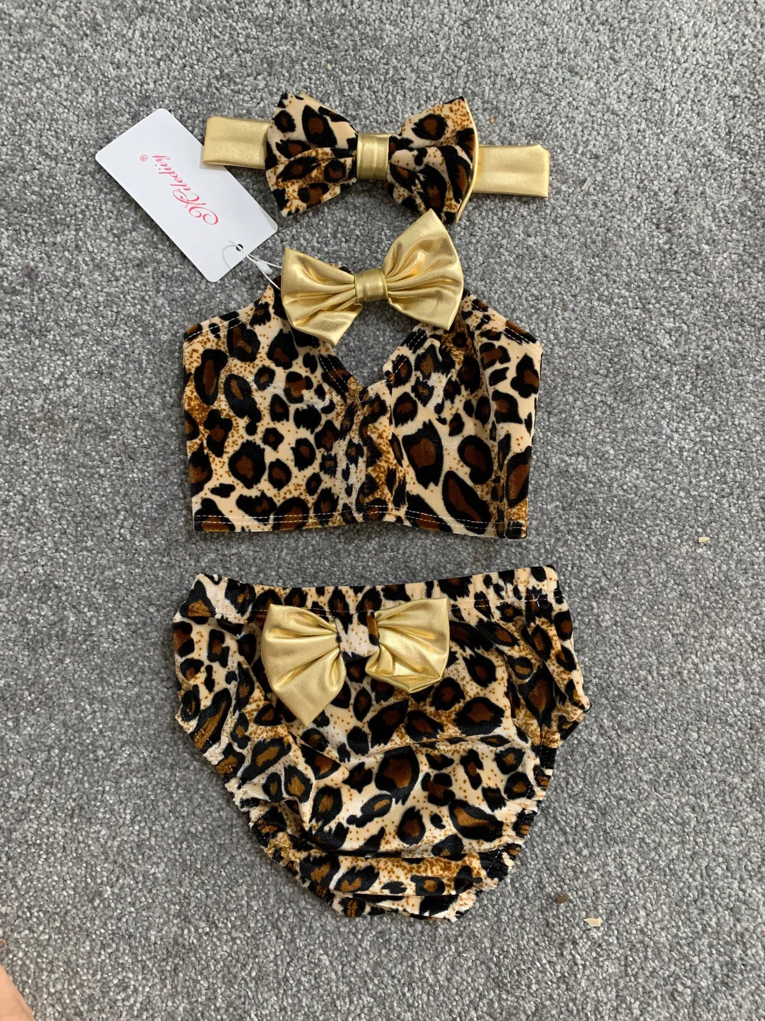 Комплект детской одежды с леопардовым принтом и бантом, 3 шт.