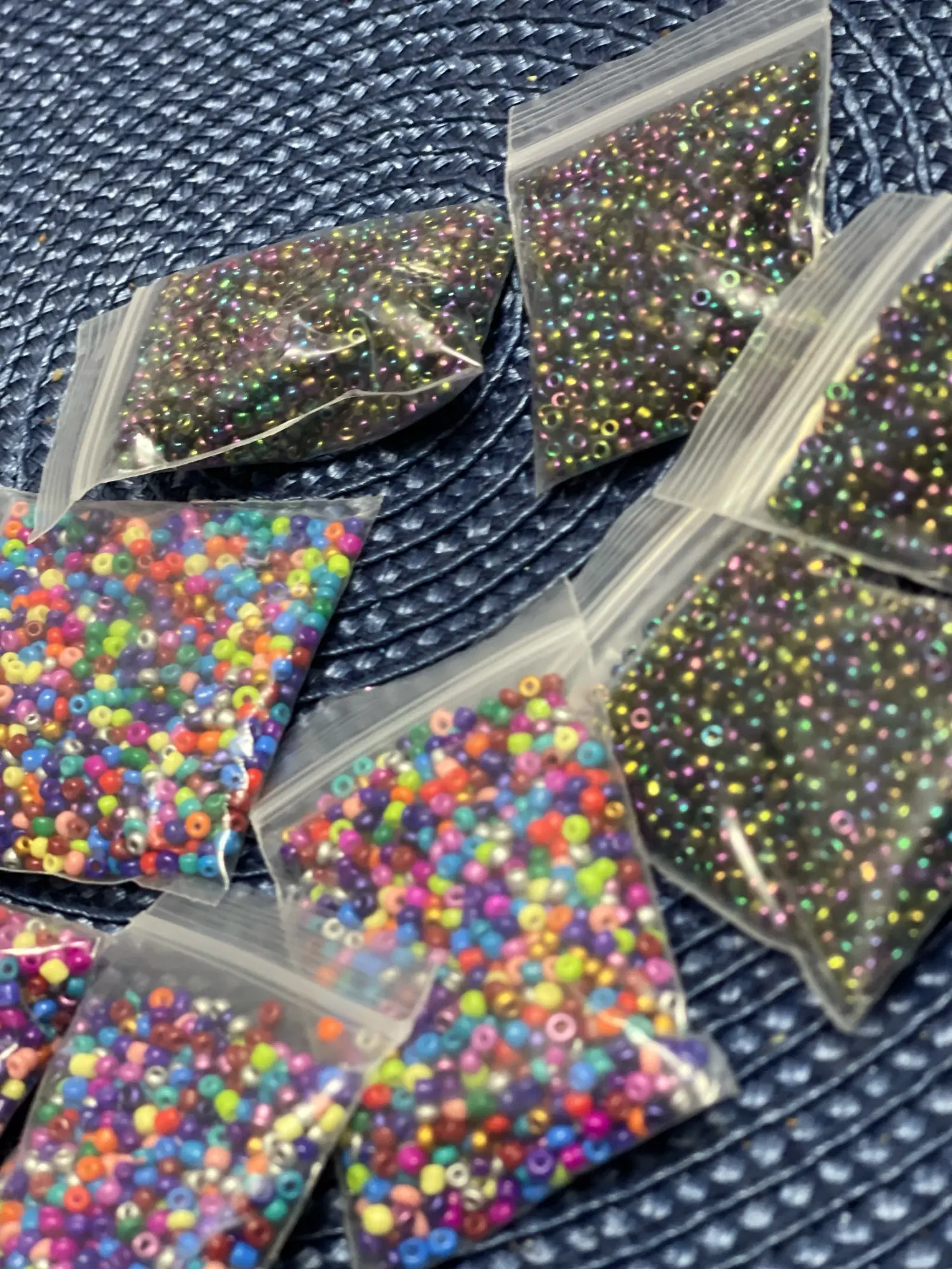 Чудесно, цвета замечательные и верьте, что в сумке я вижу только один цвет, который окрашен, остальные выглядят так, как бусины были сделаны из стекла, которое уже было цветное, В этом случае бусины остаются одного цвета, поэтому не царапаются и не царапаются. Они отлично смотрятся. Очень рад.