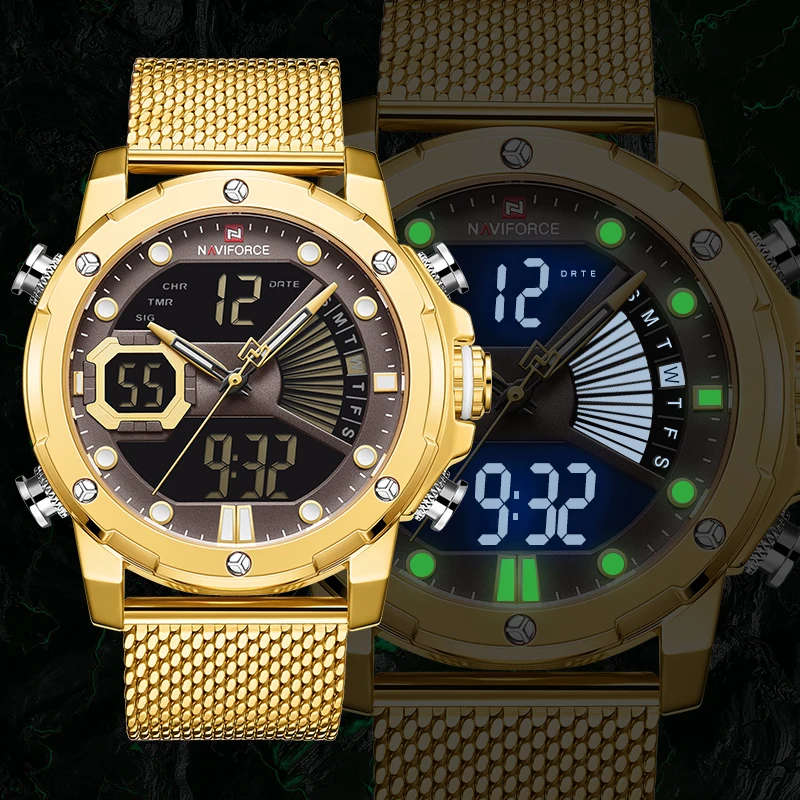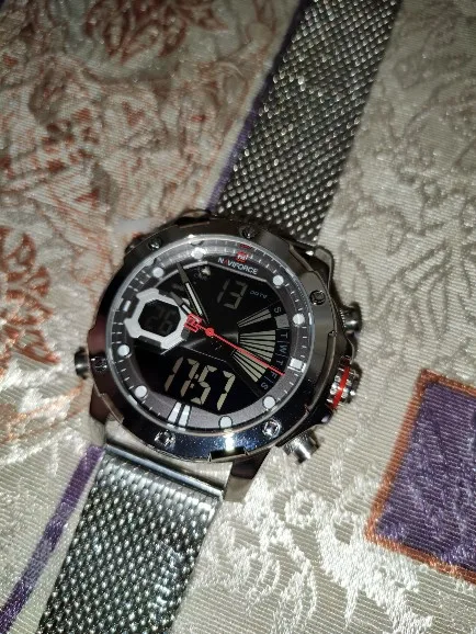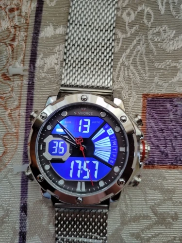 Часы с аналоговым и электронным дисплеем, будильником и голубой электролюминисцентной подсветкой – 1 шт.