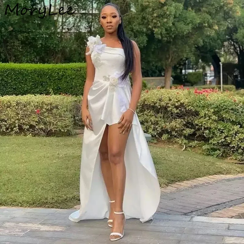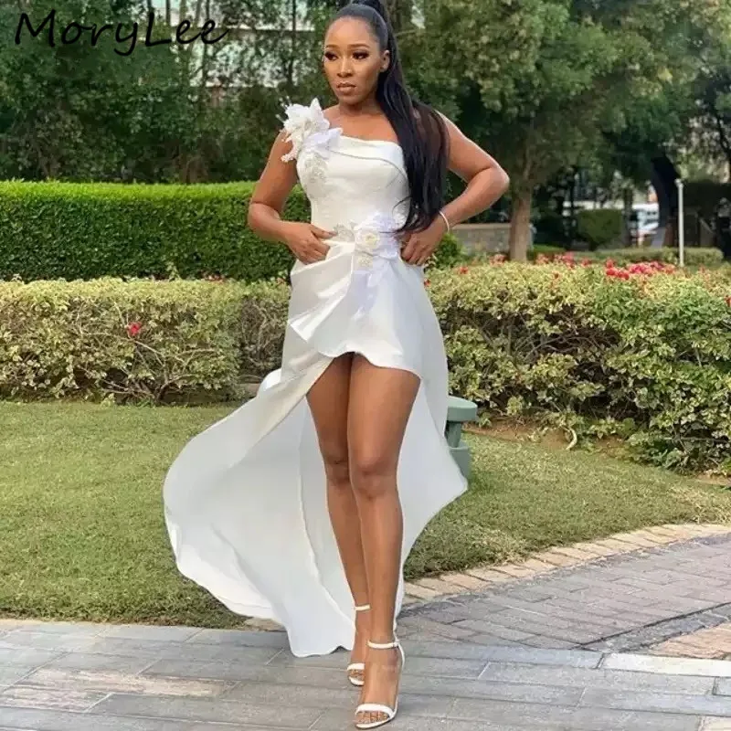 Платье подружки невесты на одно плечо, африканская ручная работа, цветок, кружево, кристалл, Hi-Lo, шелк, атлас, а-силуэт, свадебные платья подружек невесты