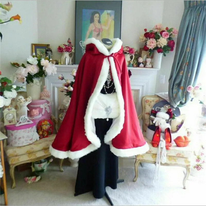 Рождественская накидка, Женская бархатная накидка с капюшоном, зимн...