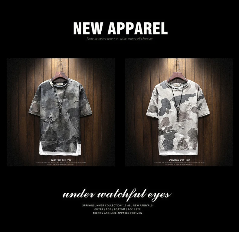 Футболка мужская с коротким рукавом, приталенная, с дырками, улична...