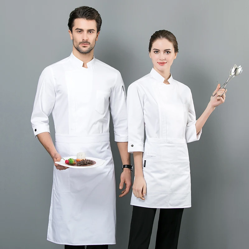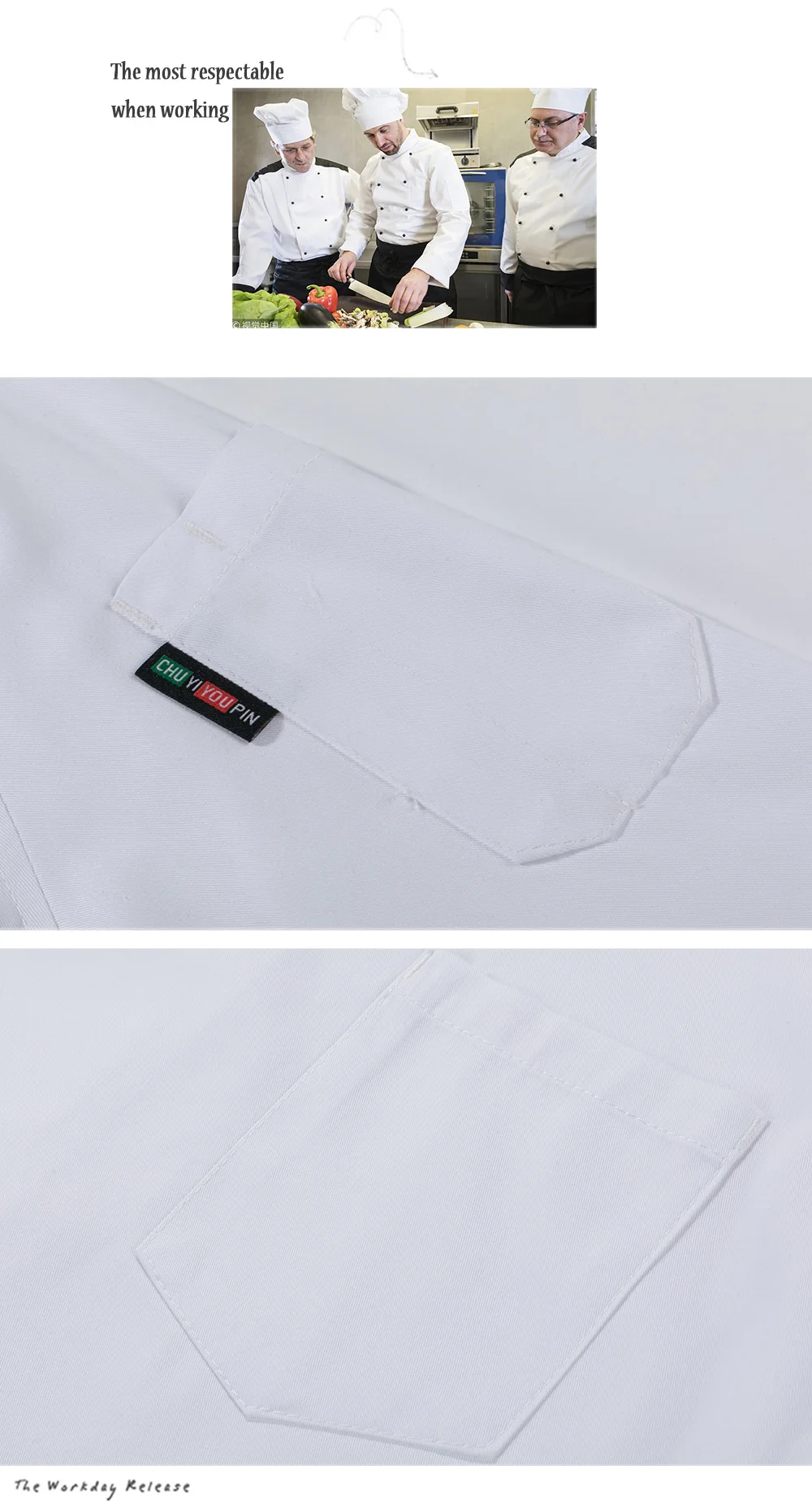 Vkamoli пищевая служба, кухонные Рабочие куртки, униформа шеф-повара для ресторана, посуда для суши, пекарни, черный, белый фартук из спилка