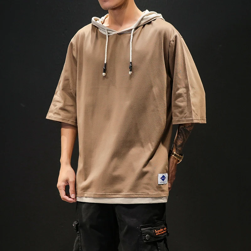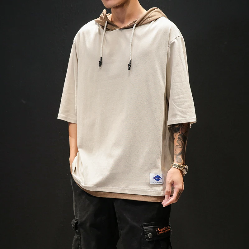 Мужская футболка с капюшоном, летняя свободная футболка с коротким ...