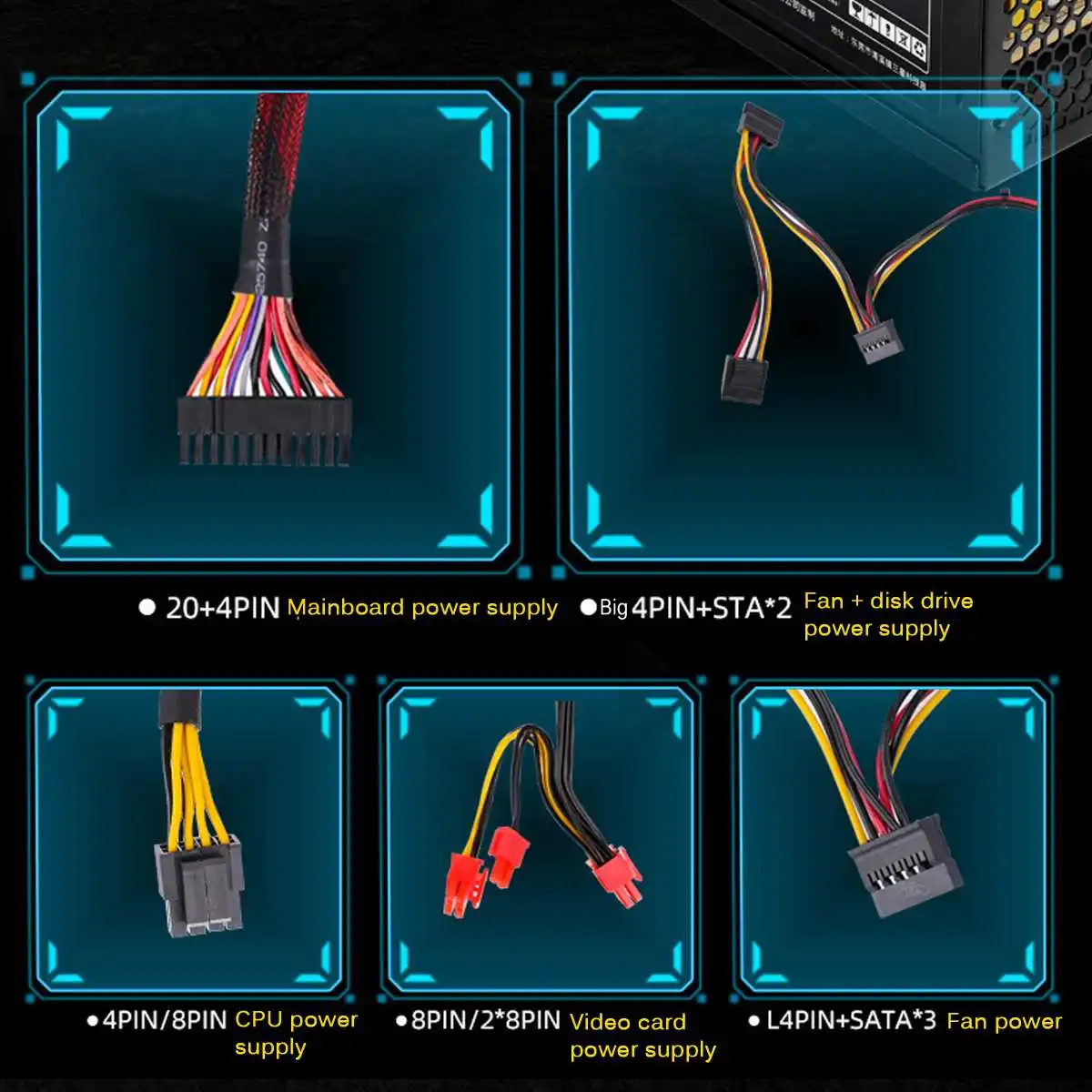 Блок питания PFC, черный, 1000 Вт, тихий вентилятор, ATX, 20 контактов, 12 В, SATA, для компьютера, игрового ПК, блок питания для компьютера Intel, AMD